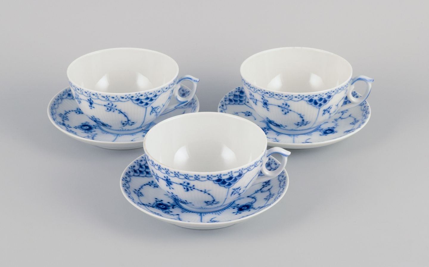 Royal Copenhagen, Musselmalet Halvblonde.Et sæt på tre par store tekopper.