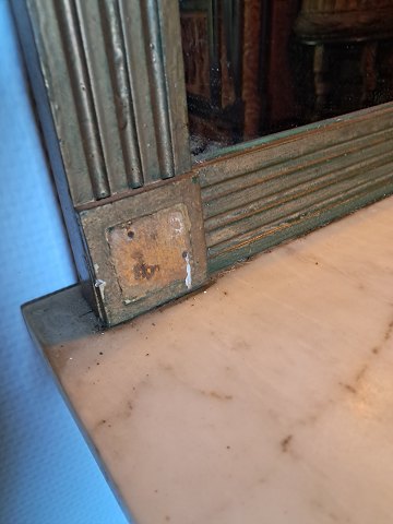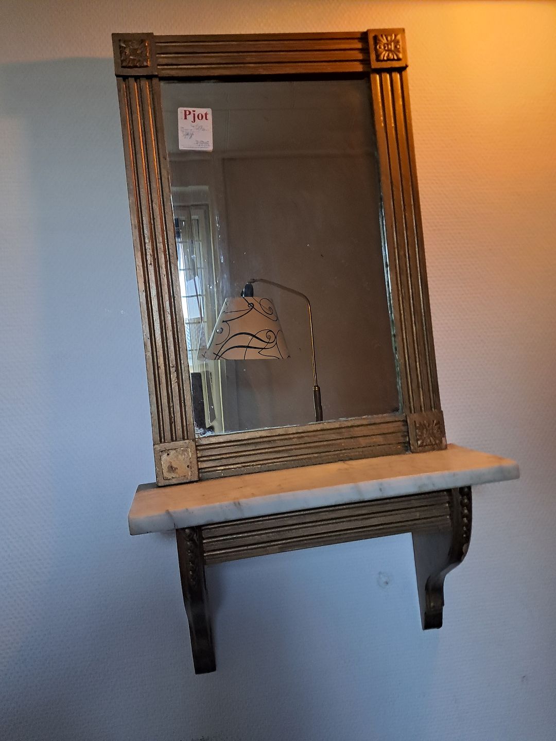 Guldmalet spejl med marmor hylde, fra 1920erne.Det har brugsspor.