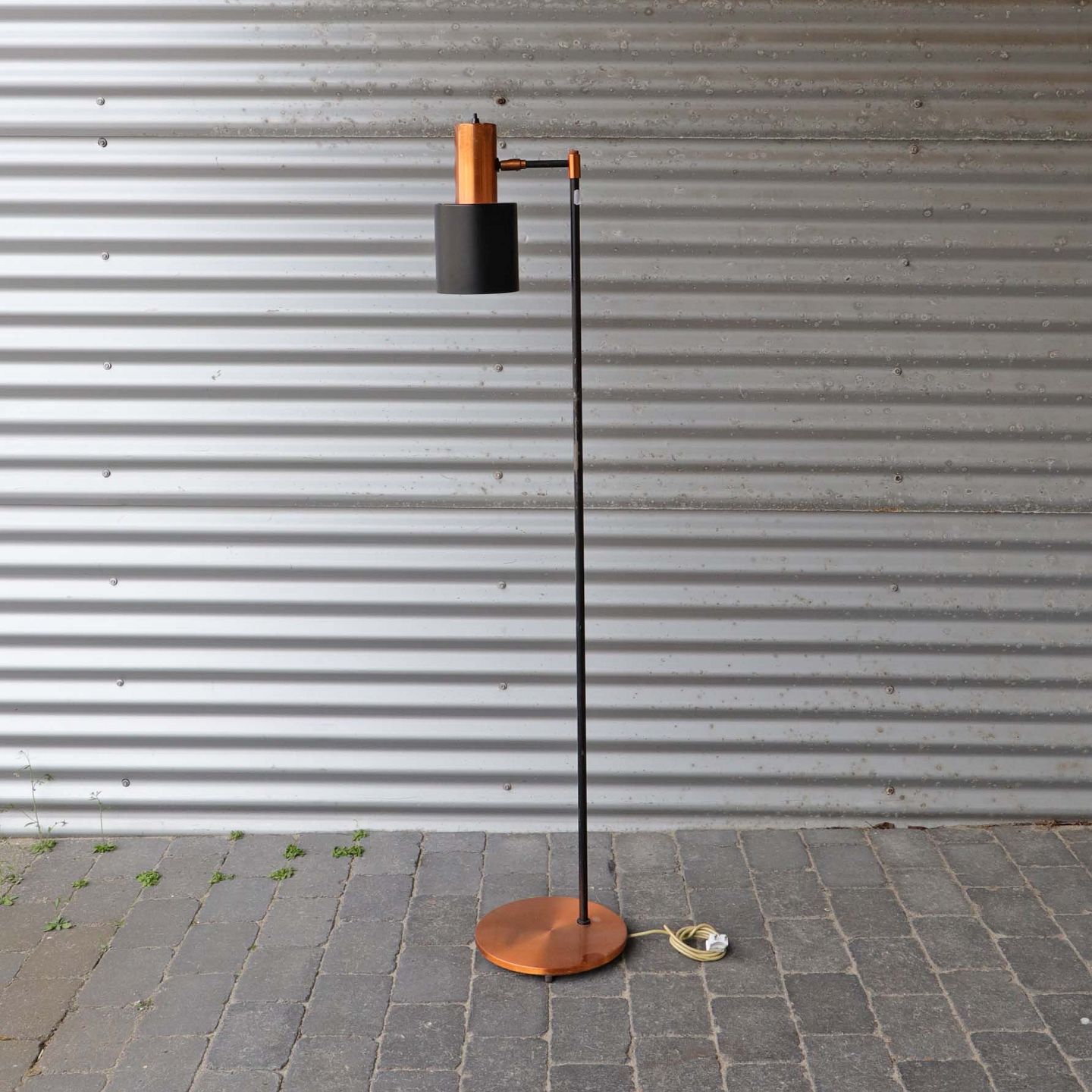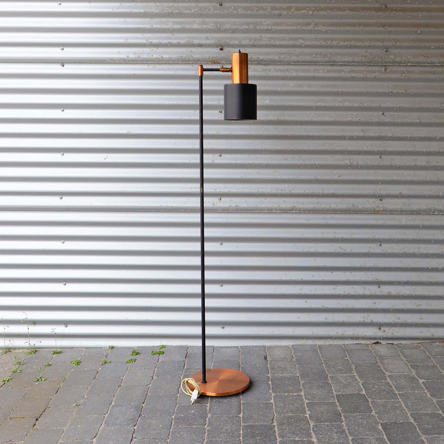 Studio standerlampe i kobber og sortlakeret metalDesign Jo Hammerborg