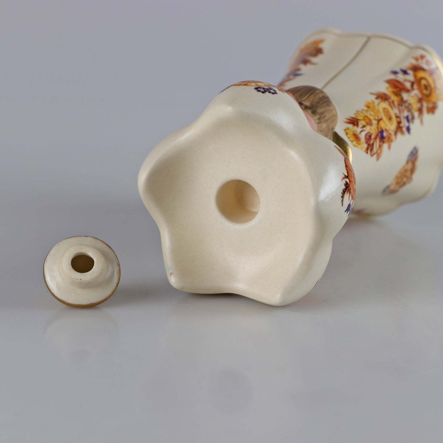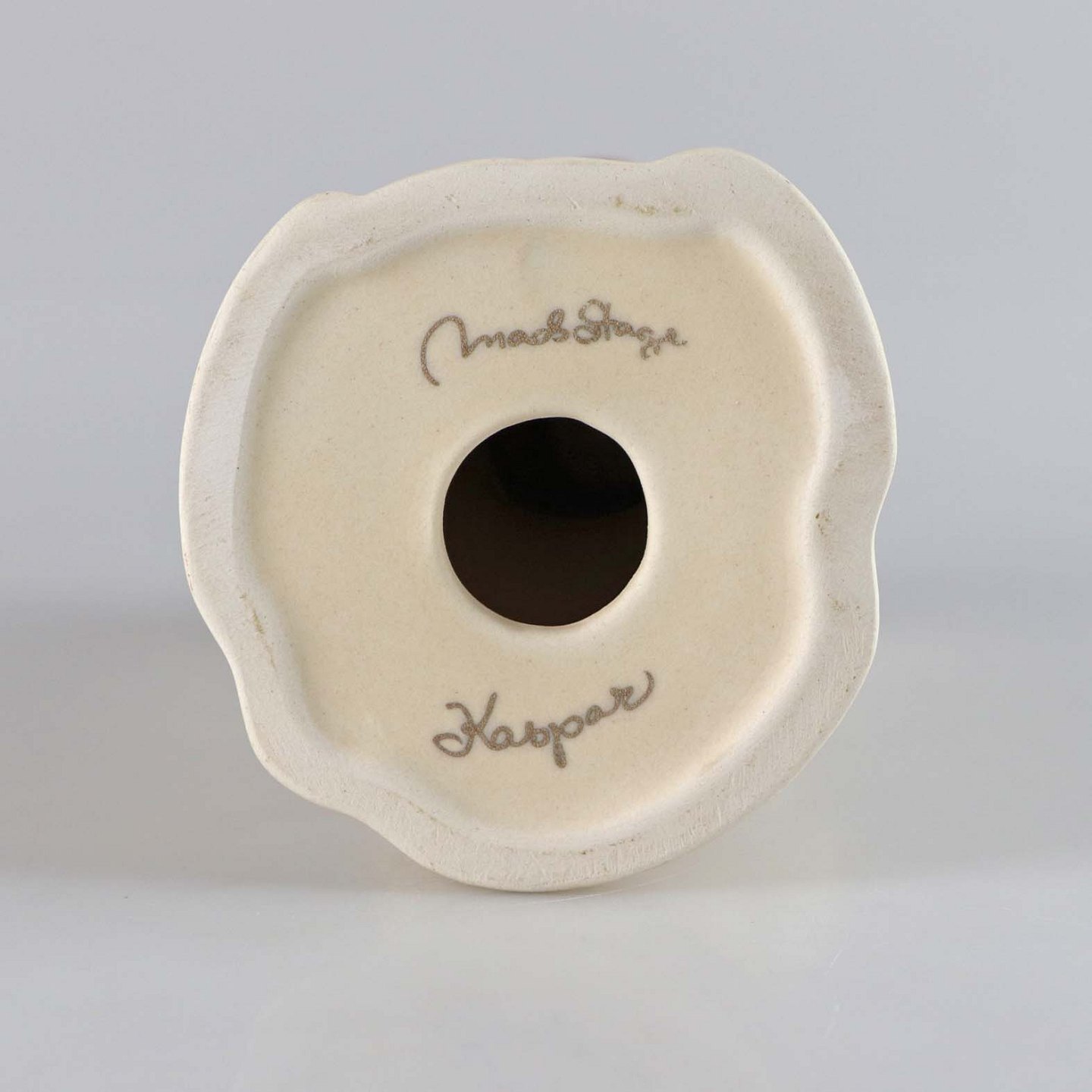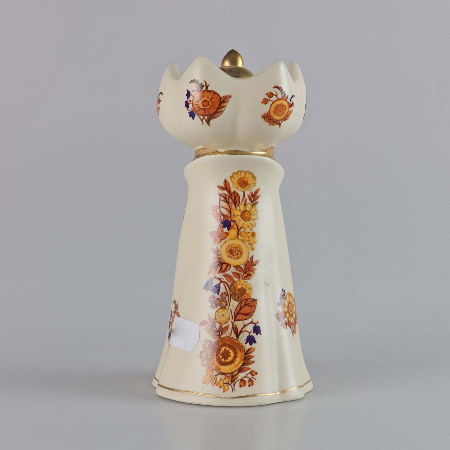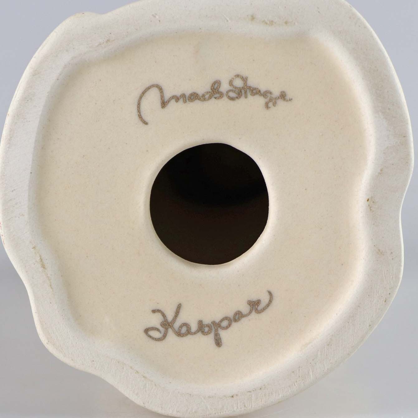 Figur i porcelæn. Kaspar fra De tre vise mænd. Når guldknoppen tages af, er der hul til et kerte lys. En af de hellige tre kongerProducent Mads Stage