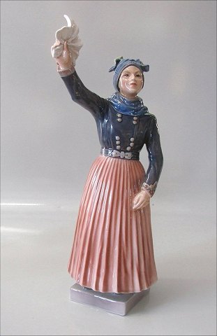 1 x 2. sorteringDahl Jensen Vinkende Pige fra Fanø i nationaldragt 1325 (DJ) 32 cm i fin stand Egnsdragt