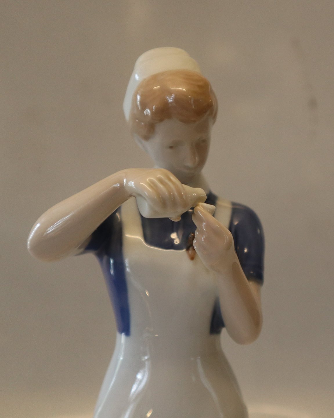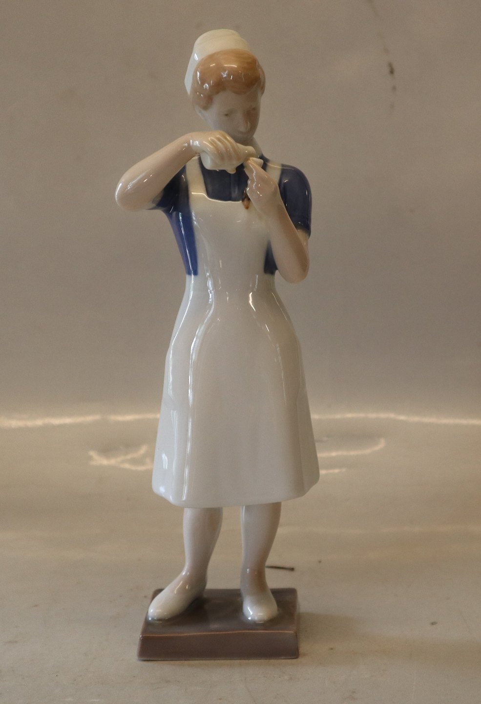 Bing & Grøndahl figur Sygeplejerske B&G 2379 Sygeplejerske 23 cm, Svend Jespersen (Kgl. #491) i hel stand med støttemærker under kjolekantet se billeder. Sygeplejeske, Nurse, Krankenschwester, sykepleierske, Sosu-assistent. sjuksköterska
