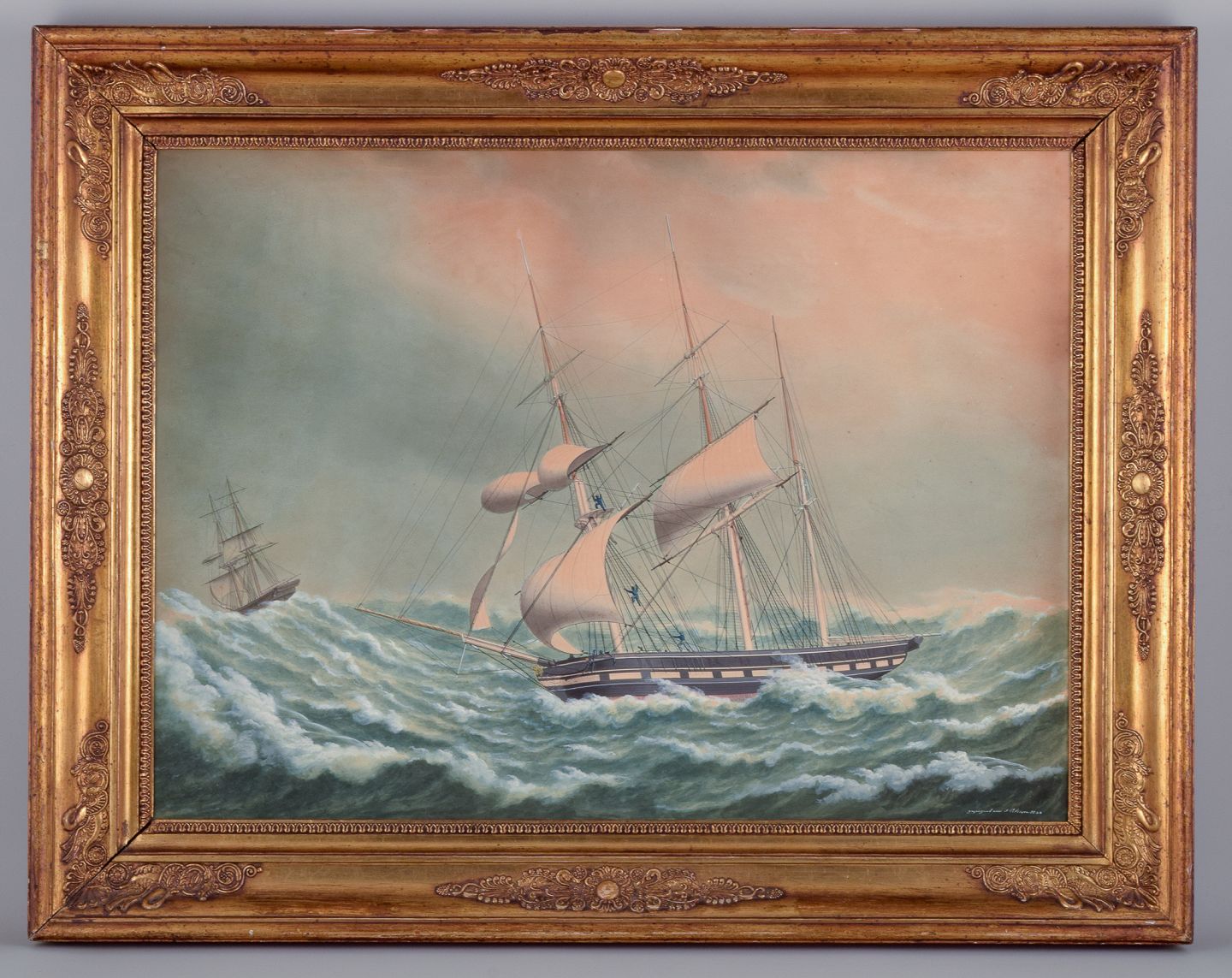 Jacob Petersen (1774-1855), elev af C. W. Eckersberg.Gouache på papir. Skibsportræt af barken ”Ingeborg af København”.