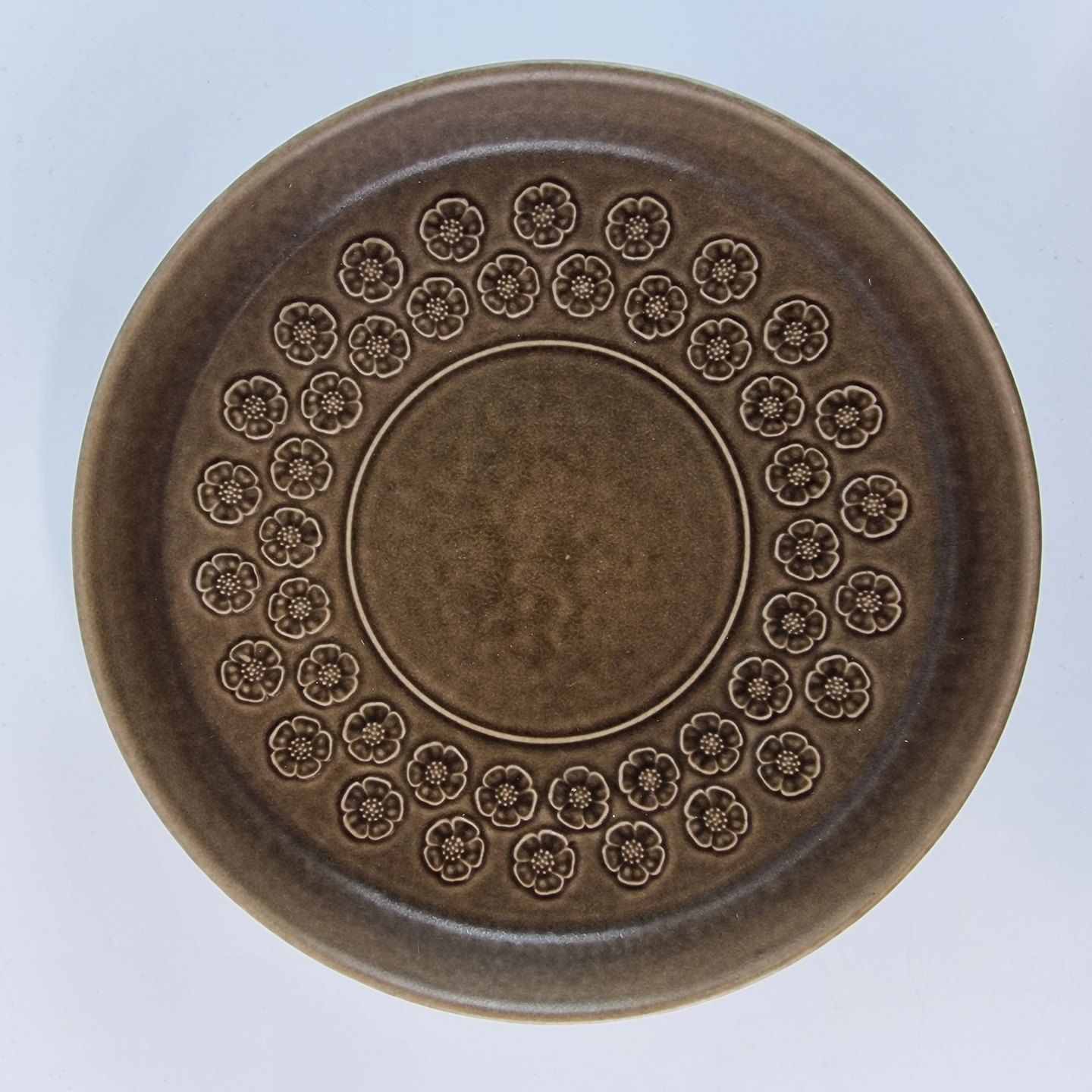 Stel i brun stentøj med blomster motiver