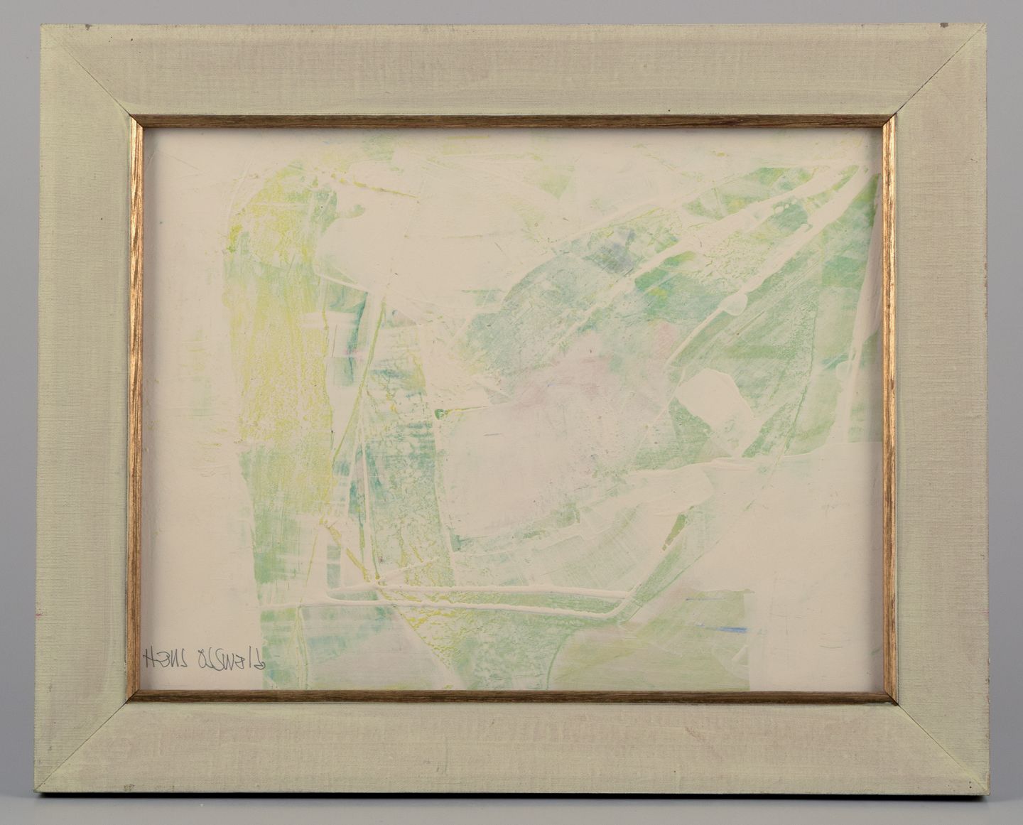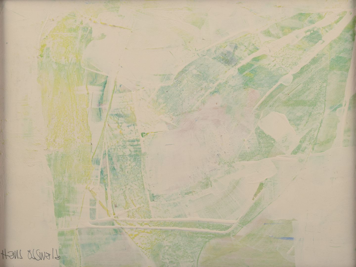 Hans Osswald, svensk kunstmaler, olie på malerplade.Abstrakt komposition. Lys palette.