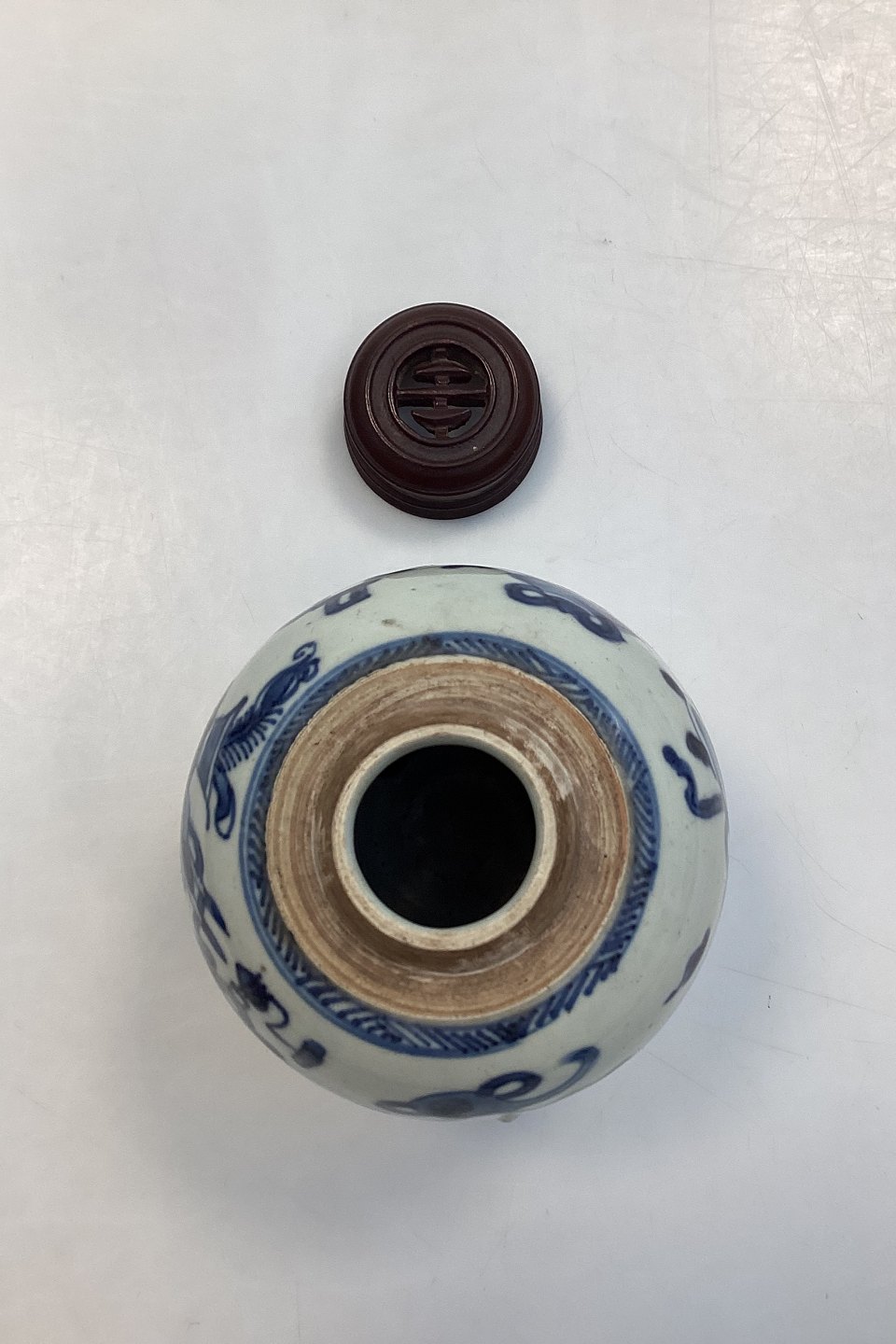 Orientalsk Kinesisk Vase / Ingefærkrukke med motiv i blå og hvid - Jiaqing perioden 1795-1820?Måler 13,5 cm x 10,5 cm