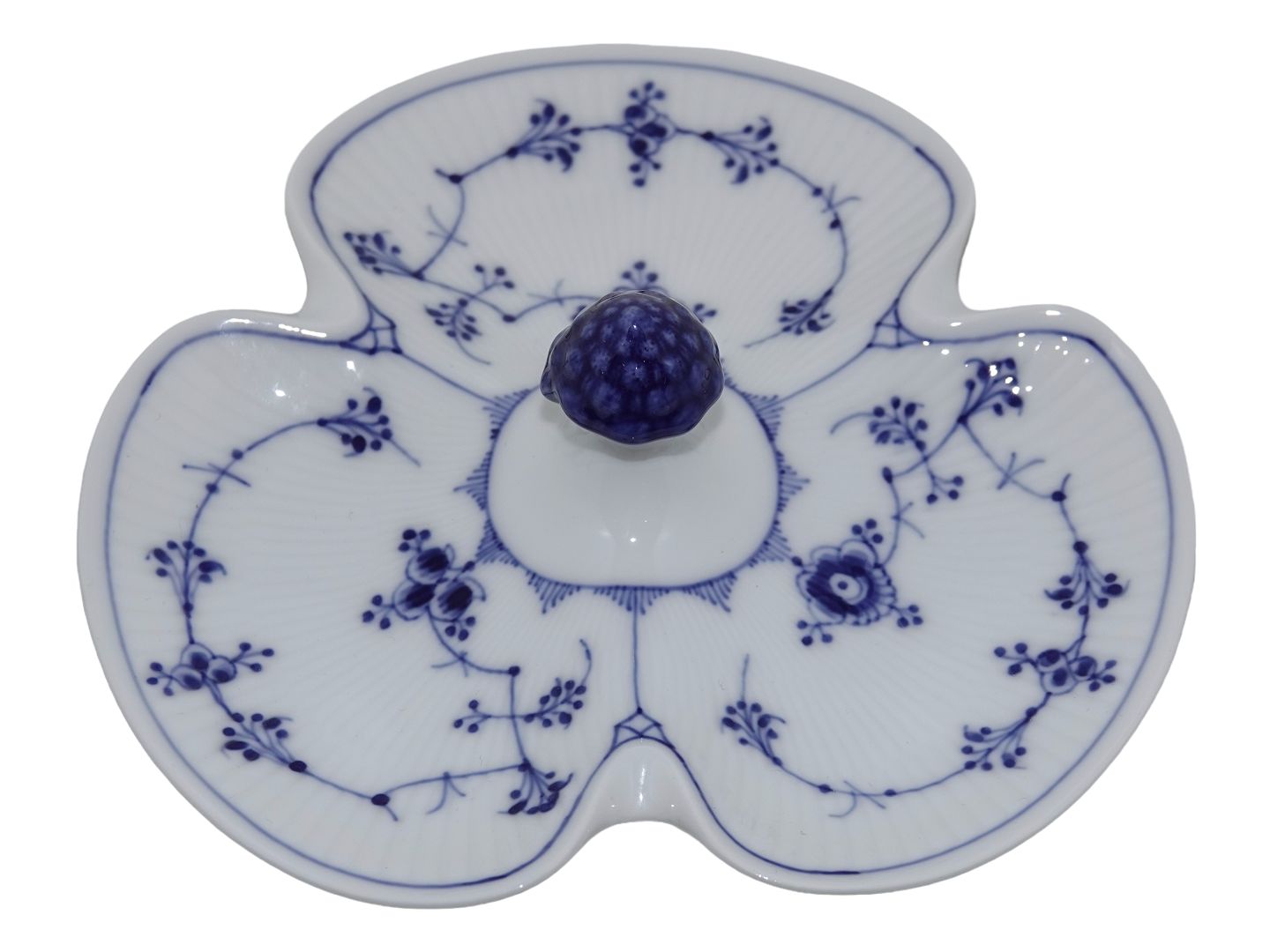 Royal Copenhagen Musselmalet Riflet, lille cabaretfad.Af fabriksmærket kan det udledes, at denne er produceret mellem 1898 og 1923.