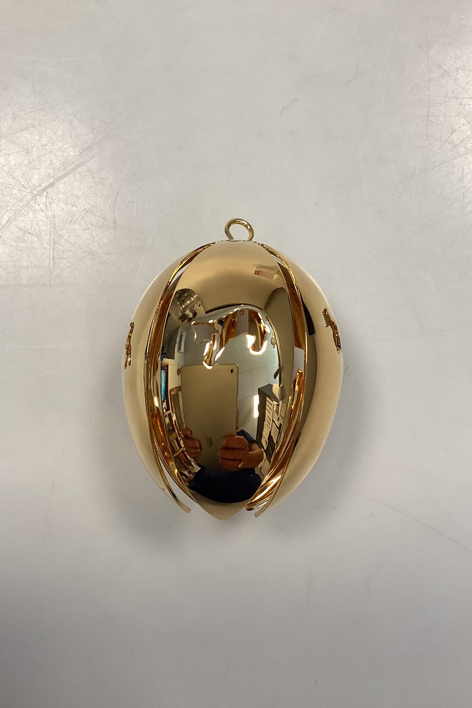 Georg Jensen Årets Påskeæg 2007 - Påskelam. Design: Regitze Overgaard. Messing forgyldt med 24-karat guld. Æske og bånd medfølger.Måler 6 cm / 2.36 in.