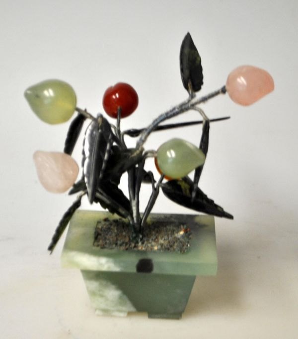 Chinesischer Jade Busch, 20. Jahrhundert. Gestaltet als Busch mit verschiedenfarbigen Jaden in einem Becken aus Jade. Höhe: 9 cm.Bestellnummer: 26636