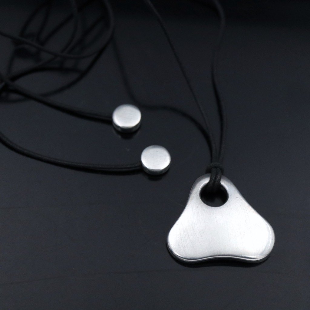 Georg Jensen. Halskæde i sterling sølv #463A - Regitze Overgaard.Bomuldssnor med tre vedhæng i sterlingsølv.