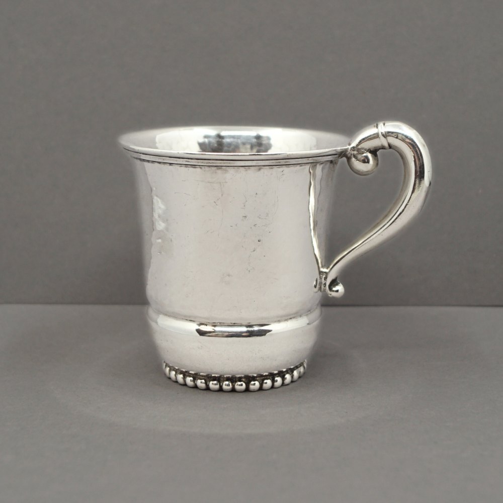 A children cup of hammered hallmarked silver, 1930.H. 7 cm. Diam 6,7 cm.