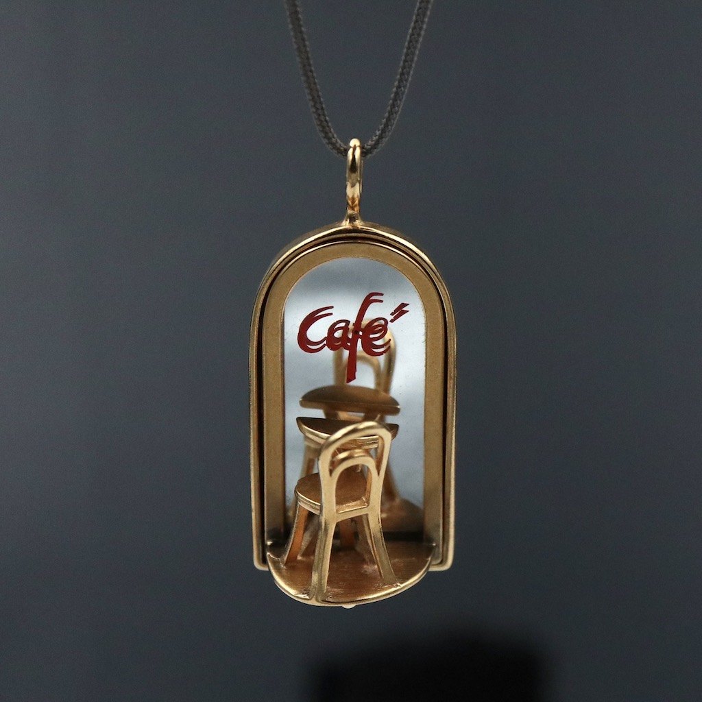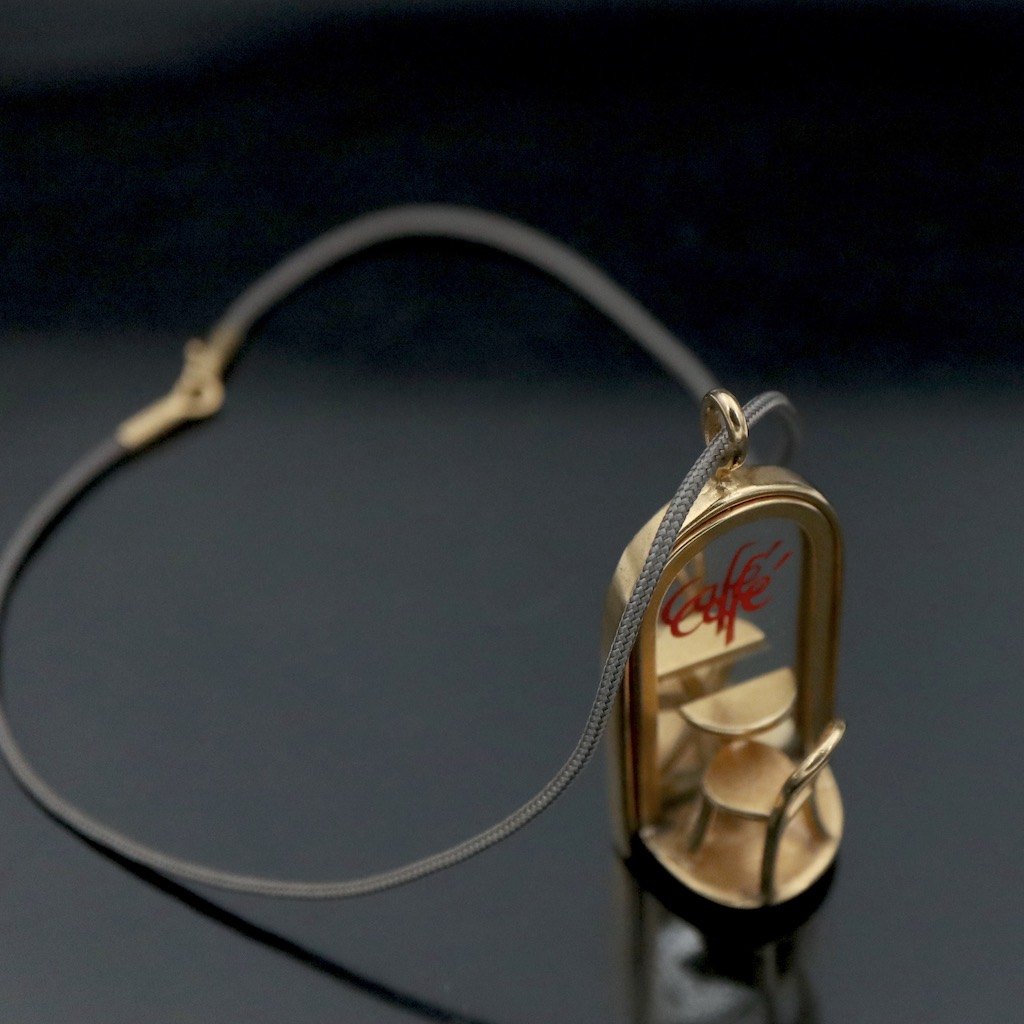 Georg Jensen 'Sunshine & Night' Café Vedhæng. #5201 - Ole Bent PetersenMessing forgyldt med 14 kt guld med original bomuldssnor.