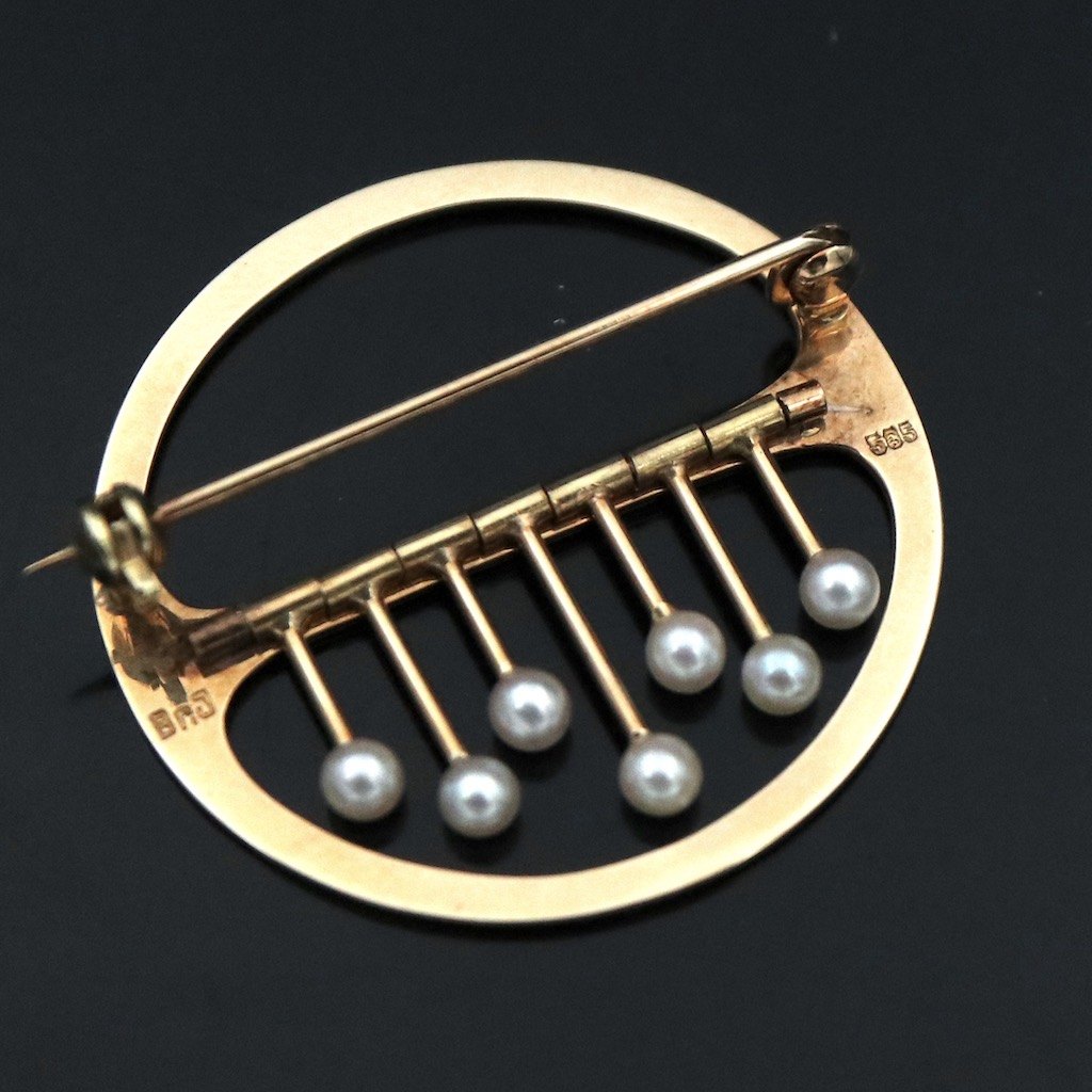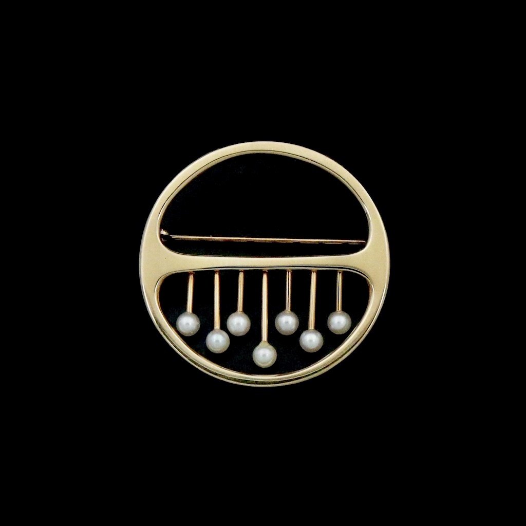 Bræmer-Jensen. Broche i 14k guld med perler.Tegnet og udført af Bræmer-Jensen - 1957 - 1991.