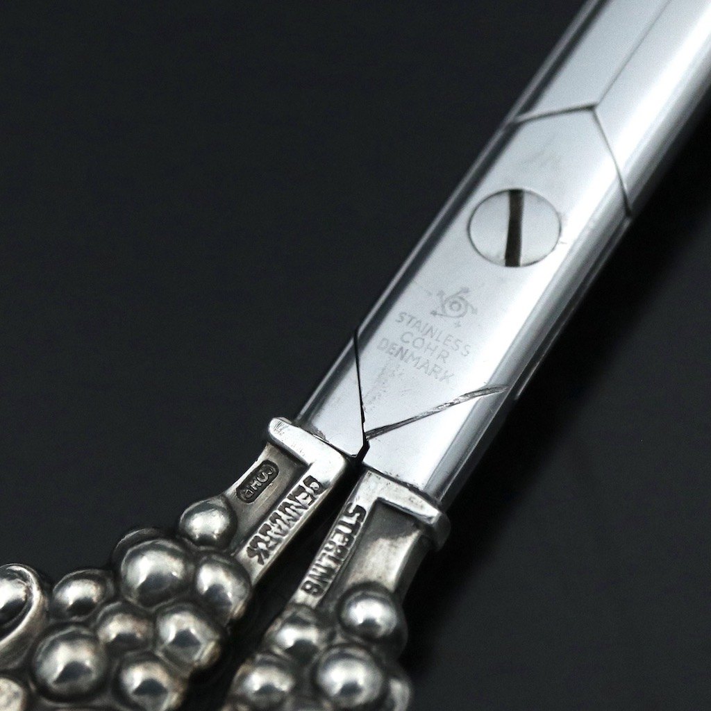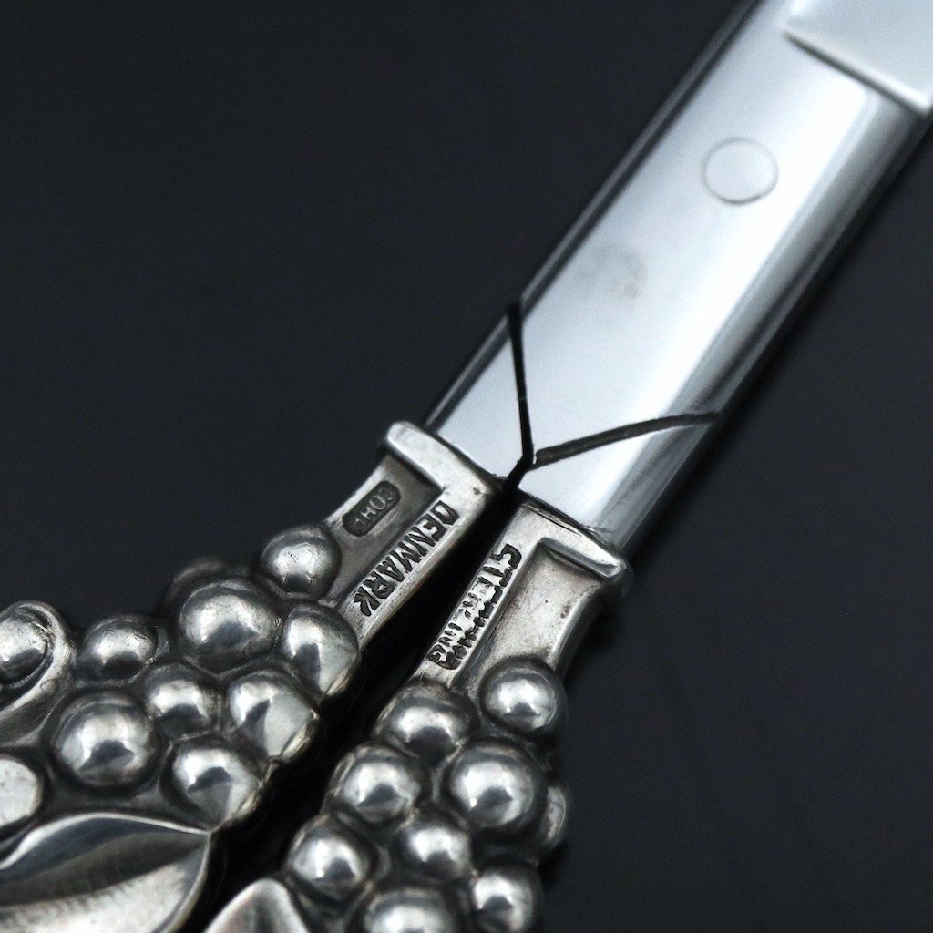 Carl M. Cohr. Druesaks i sterlingsølv.Handtag i sterling sølv. blade i stål.