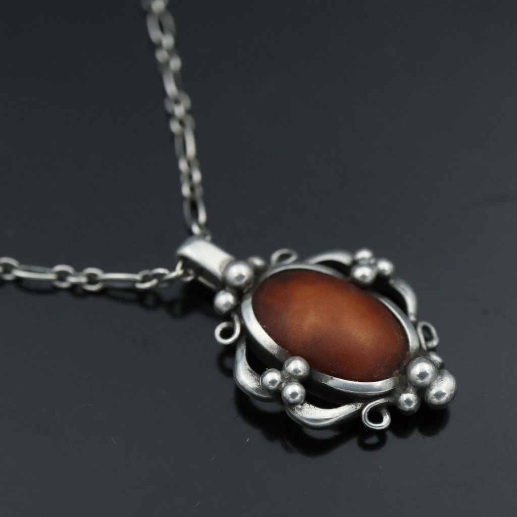Georg Jensen. vedhæng i sterlingsølv med rav.Tegnet af Georg Jensen 1866 - 1935.
