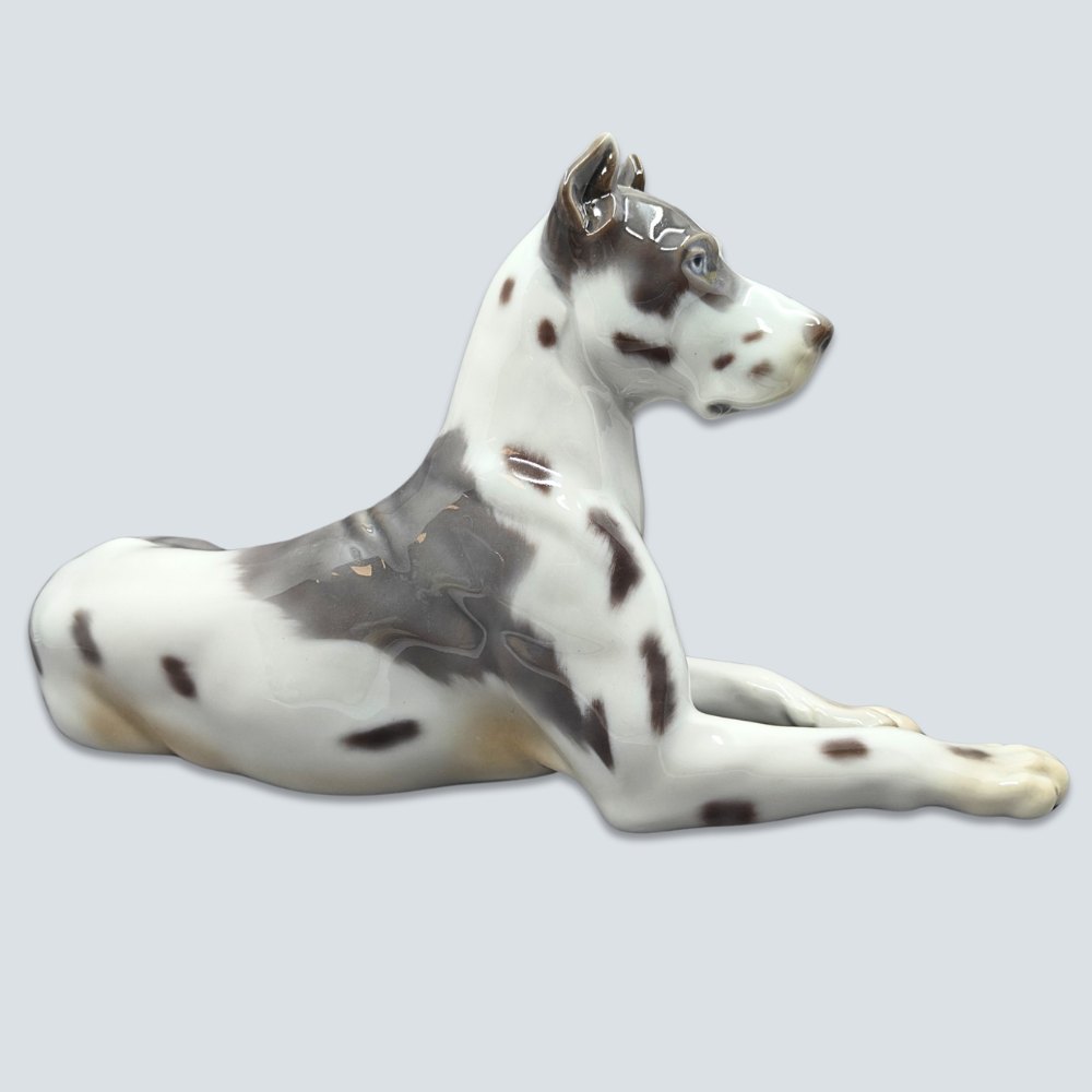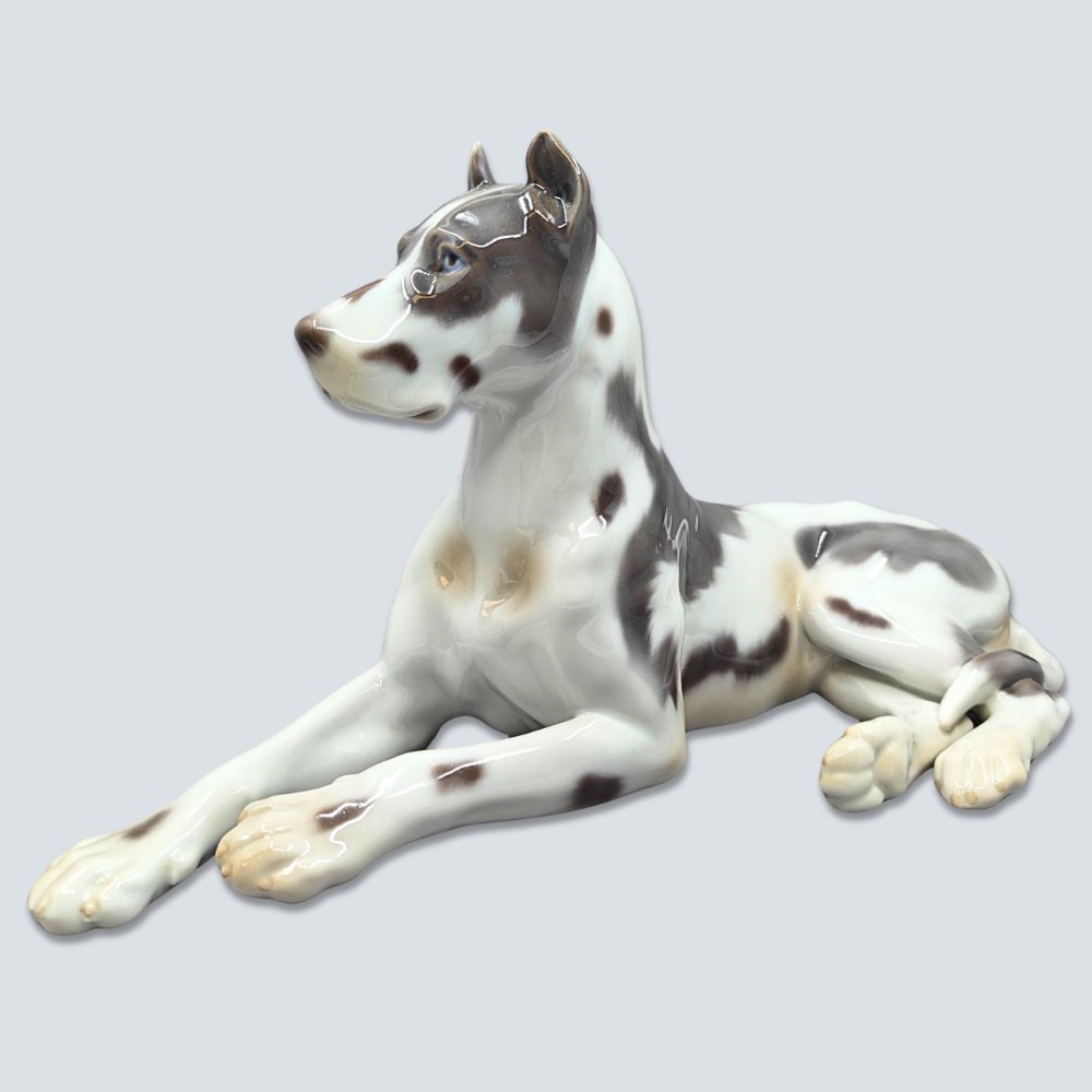 Bing & Grøndahl; Stor Grand Danois porcelænsfigur #1773Hunde figur h. 15,5 cm. L. 29 cm.