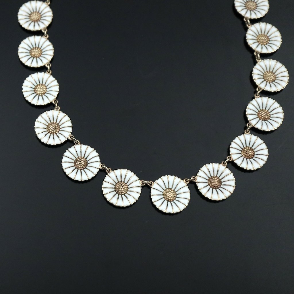 Georg Jensen Marguerit / Daisy Halskæde i forgyldt Sterling Sølv med hvid emalje 18mm.
