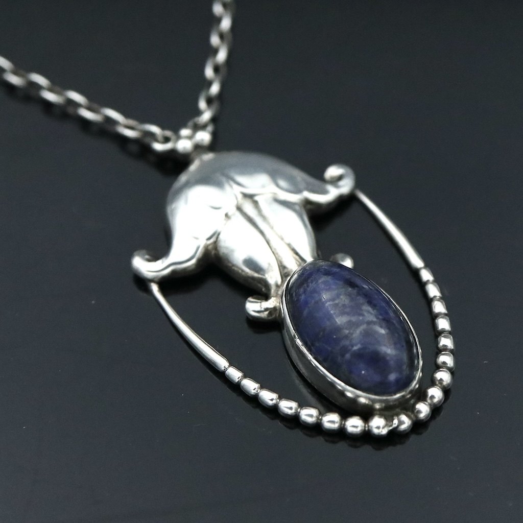 Georg Jensen. Vedhæng i sølv med Lapis Lazuli #42.Tegnet af Georg Jensen 1866 - 1935