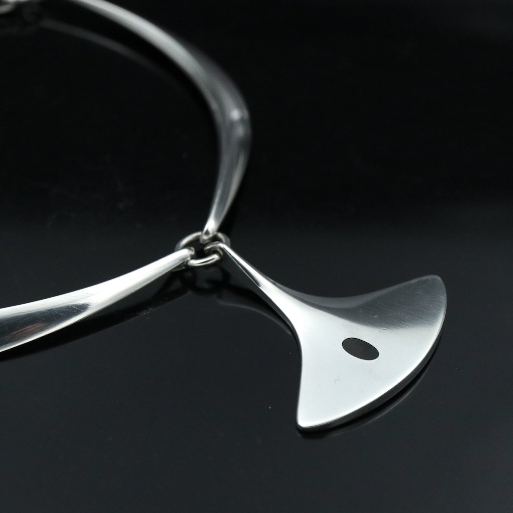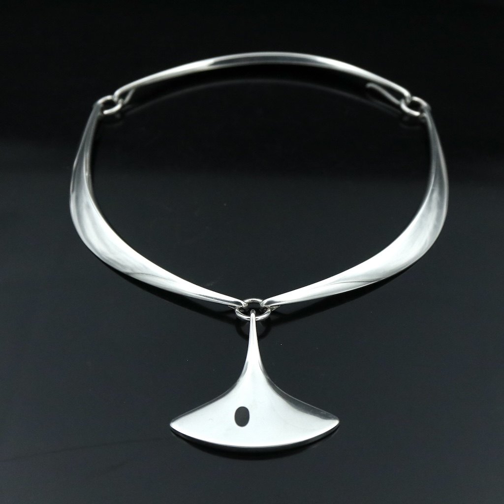 Hans Hansen. Halsring #320 i sterling sølv med emaljevedhæng #323 - Bent Gabrielsen.Tegnet af Bent Gabrielsen og udført hos Hans Hansen, Kolding.