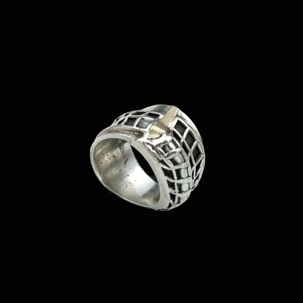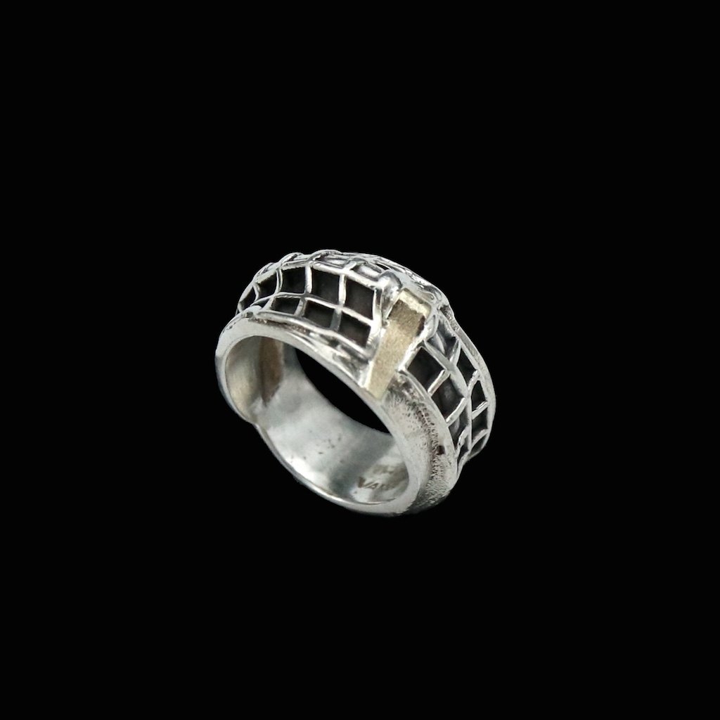 Jørgen Peter Vang. Ring i oxideret sterlingsølv med 14k guld.