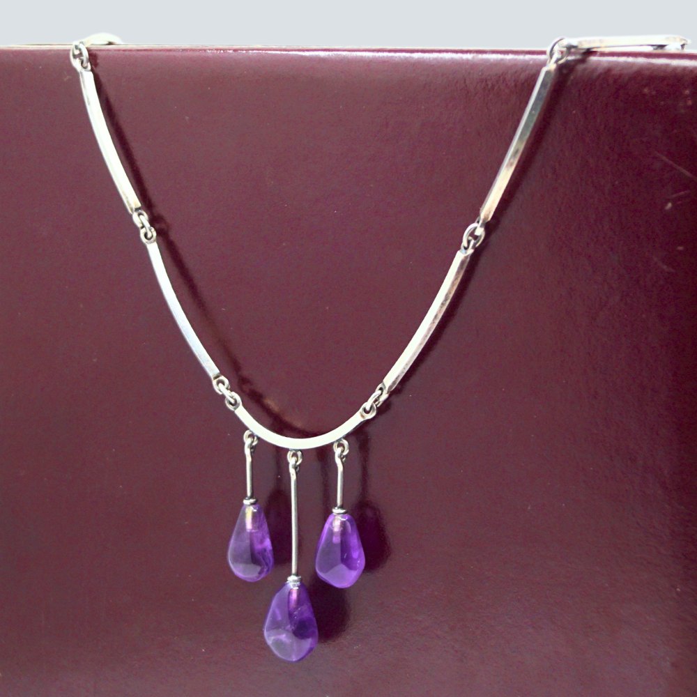 N. E. From silver jewellery.Niels Erik From; A necklace made of sterling silver set with amethysts. Pendant diam. Necklace l. 43 cm. Pendant l. 3 - 4,2 cm. Stamped