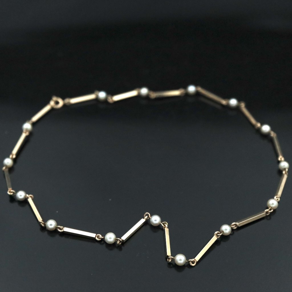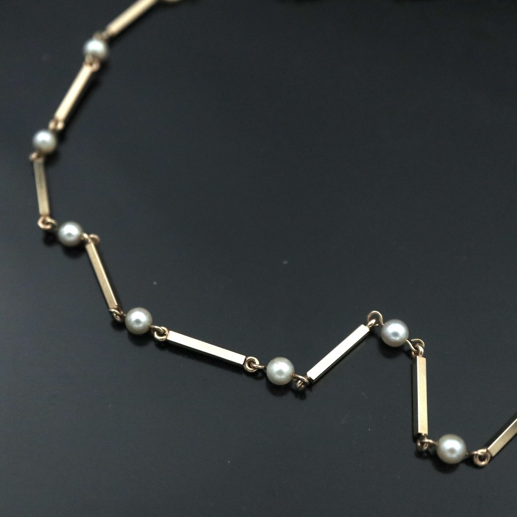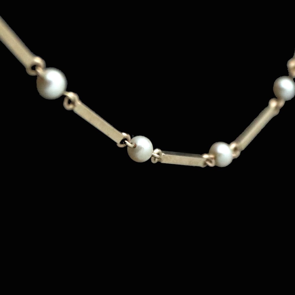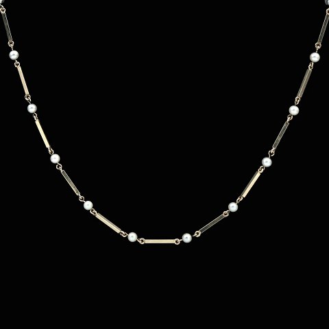 Hermann Siersbøl. 'Pind og Perle' Halskæde i 14k guld med perler.