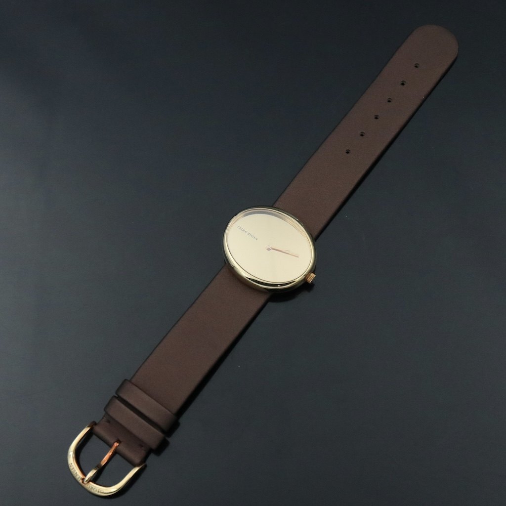 Georg Jensen Armbåndsur i 18k guld #1323 - Oval - Vivianna TorunUrkasse og spænde i 18k guld. Brun Satin Rem.