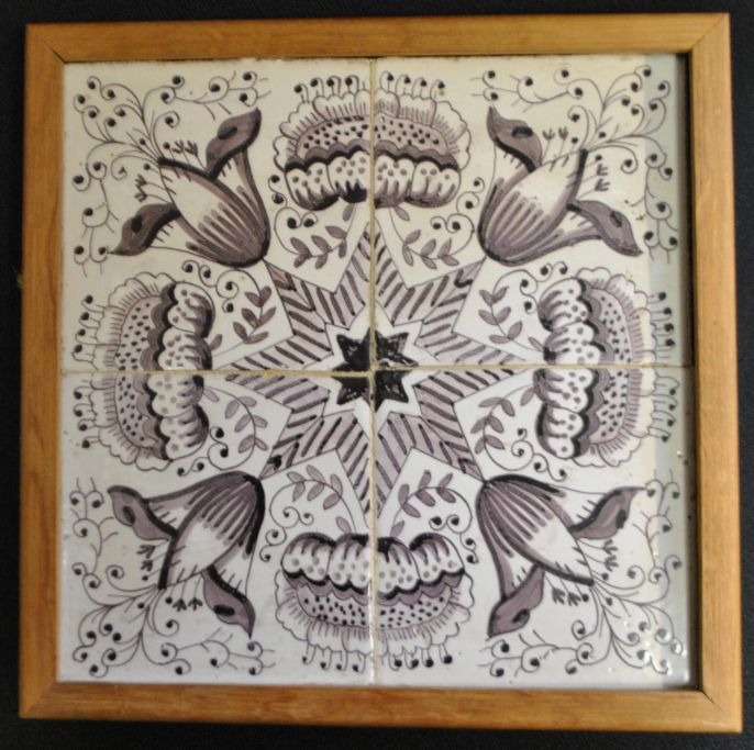 Firpas mit holländischen Fliesen, mittlerer Teil des 18. Jahrhunderts. Ornamentfliese. Manganfarben. 12,8 x 12,8 cm.Gerahmt.