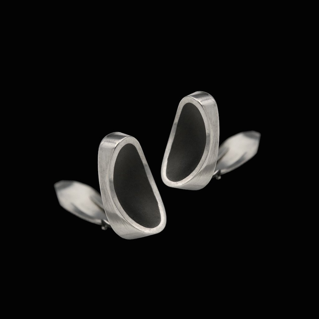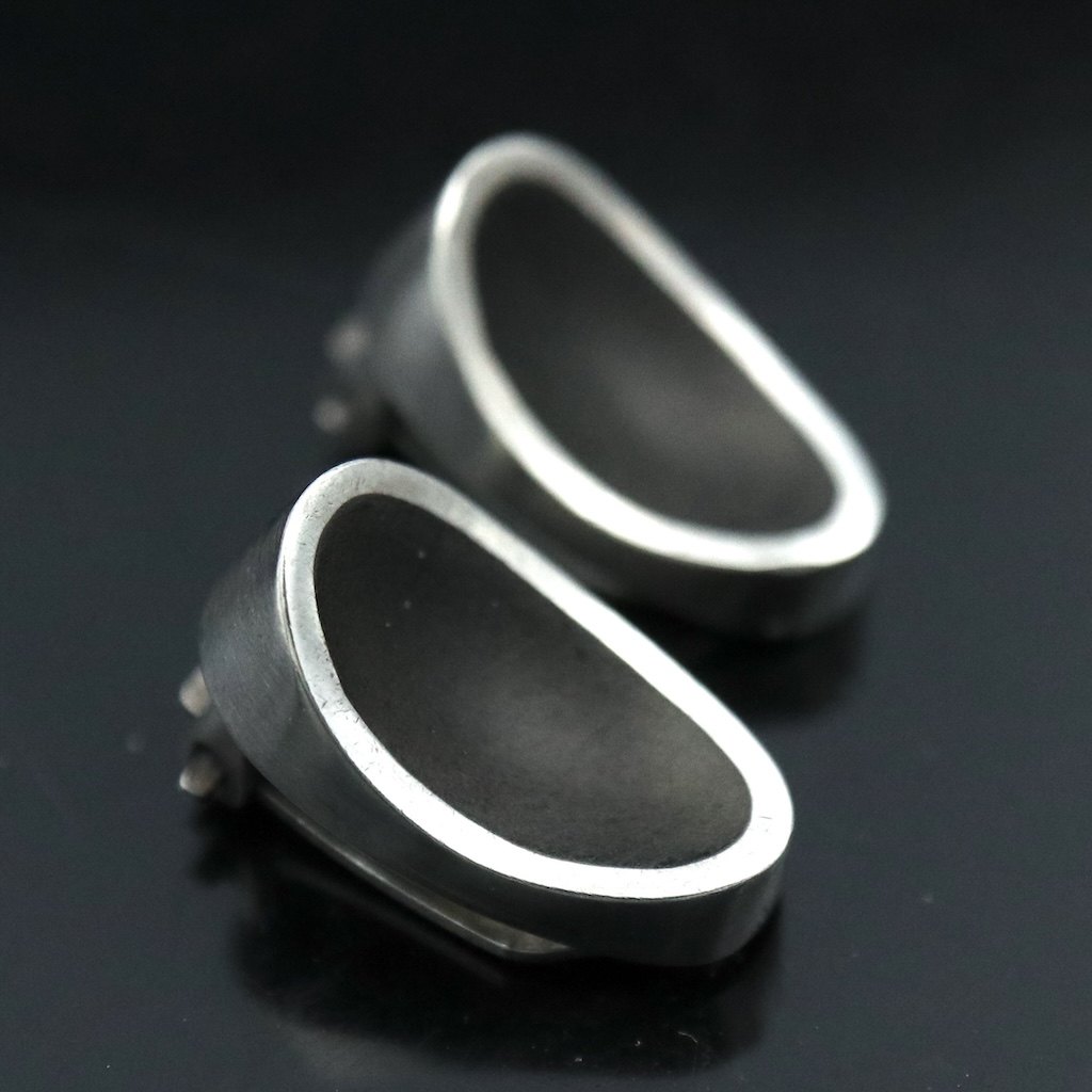 Thor Selzer. Øreklips i sterling sølv med emalje.Tegnet og udført hos Thor Selzer - Copenhagen 1968 - 1991.