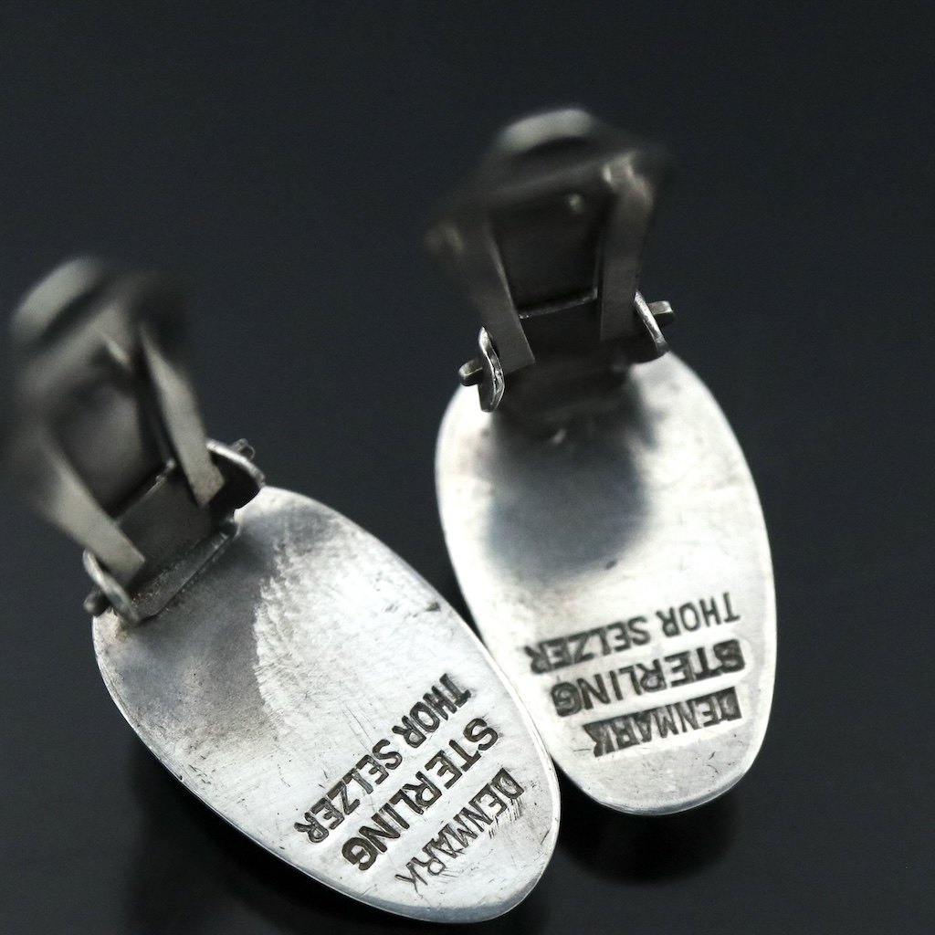 Thor Selzer. Øreklips i sterling sølv med emalje.