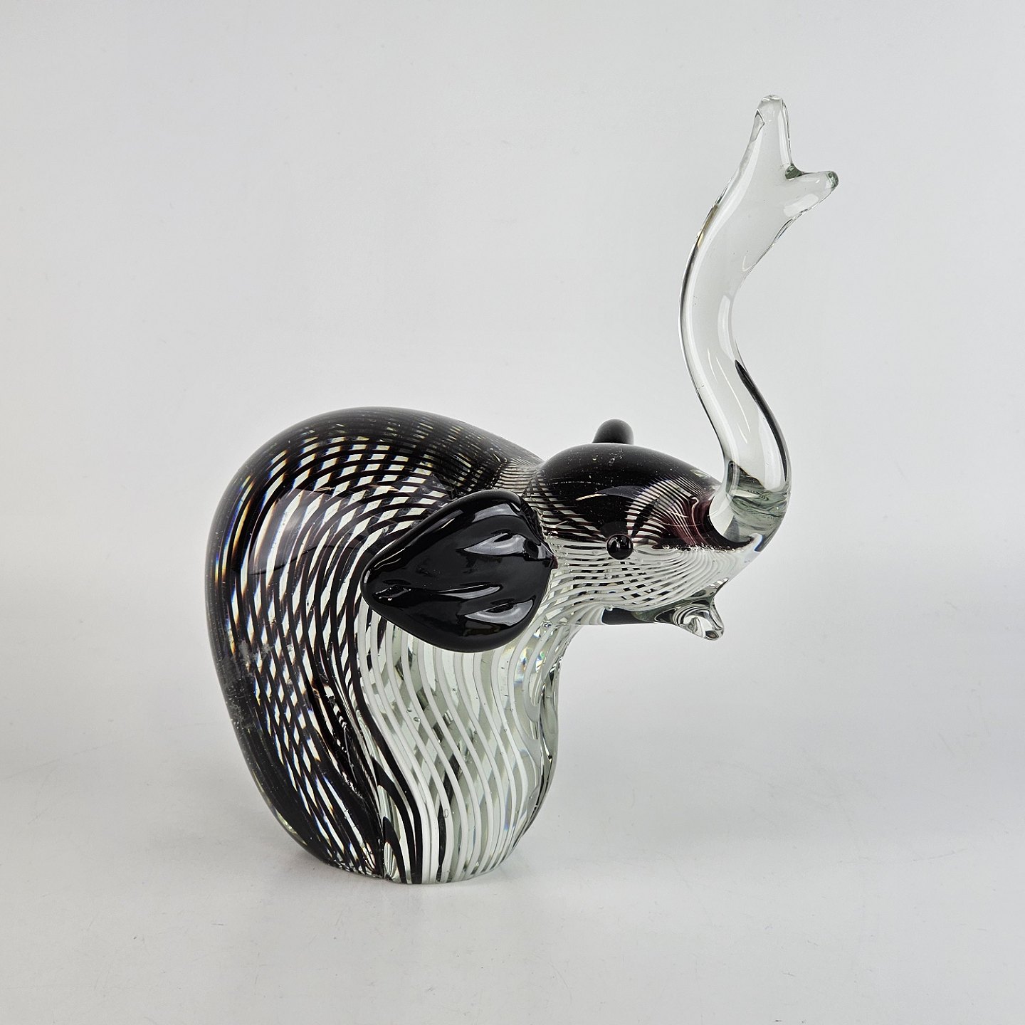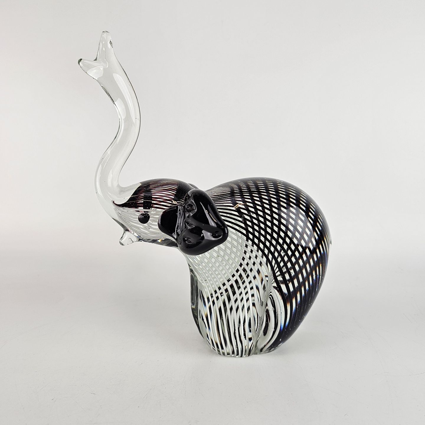 Elefant i klart glas med sorte striber.Kan fungere som brevvægt.