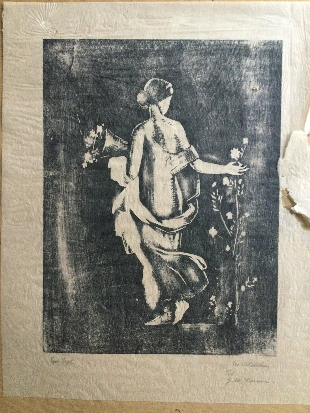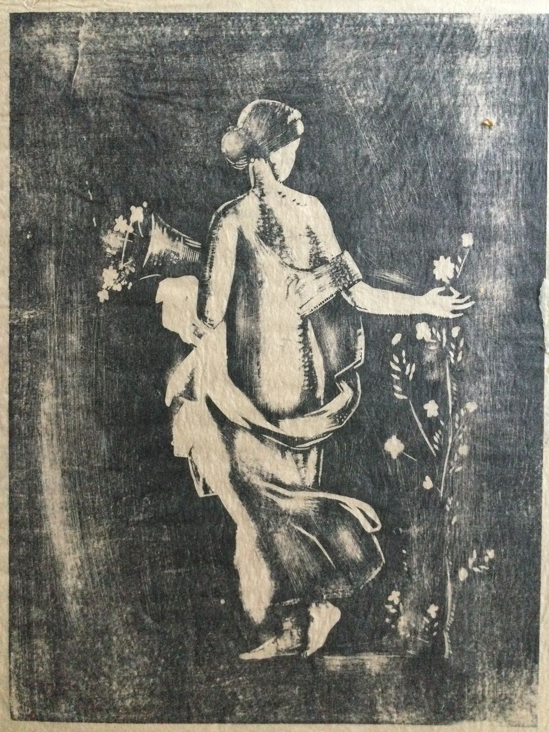 Træsnit af Ernst Zeuthen - Blomstersamlersken "Flora"