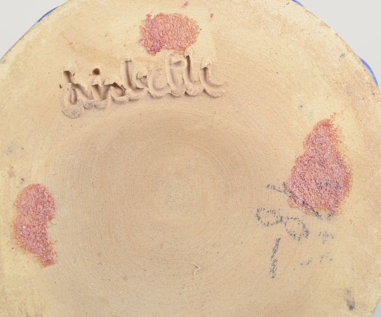 Vertikale linjer i blå glasur. Håndlavet.