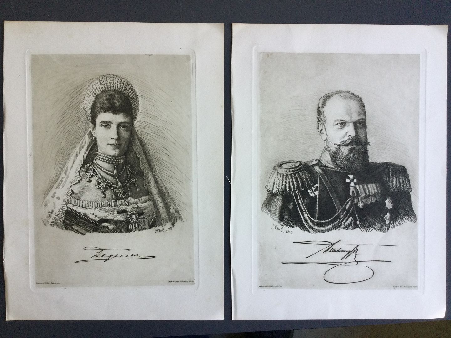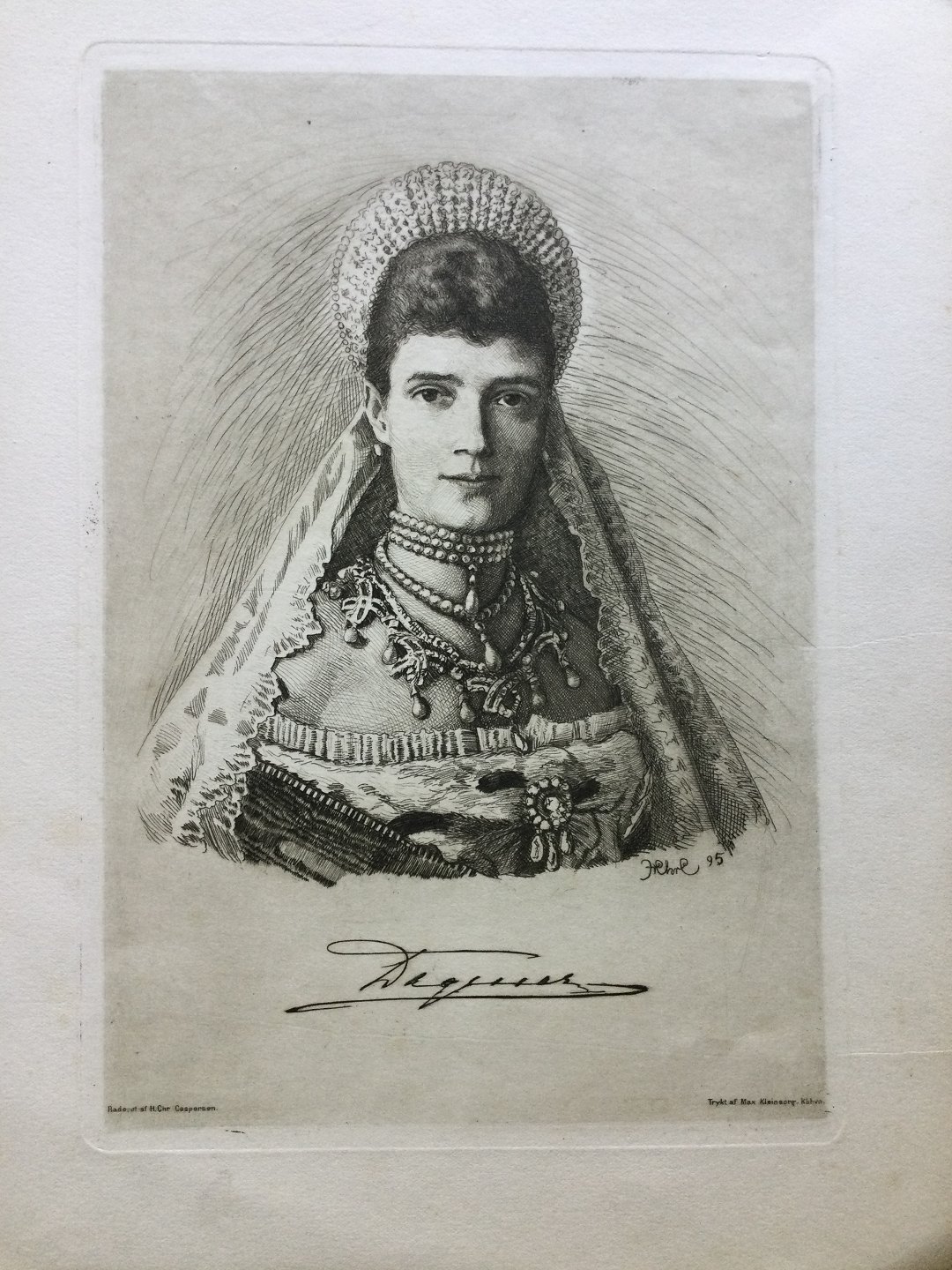 Raderinger af Hans Chr. Gether-Caspersen 1895- Portrætter ad DM Kejser Aleksandr III og Kejserinde Dagmar af Rusland.
