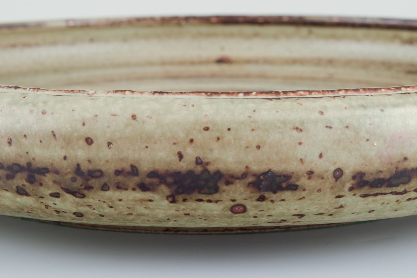 Carl Halier (1873–1948) for Royal Copenhagen, stort fad i stentøj.Lys Sung glasur.