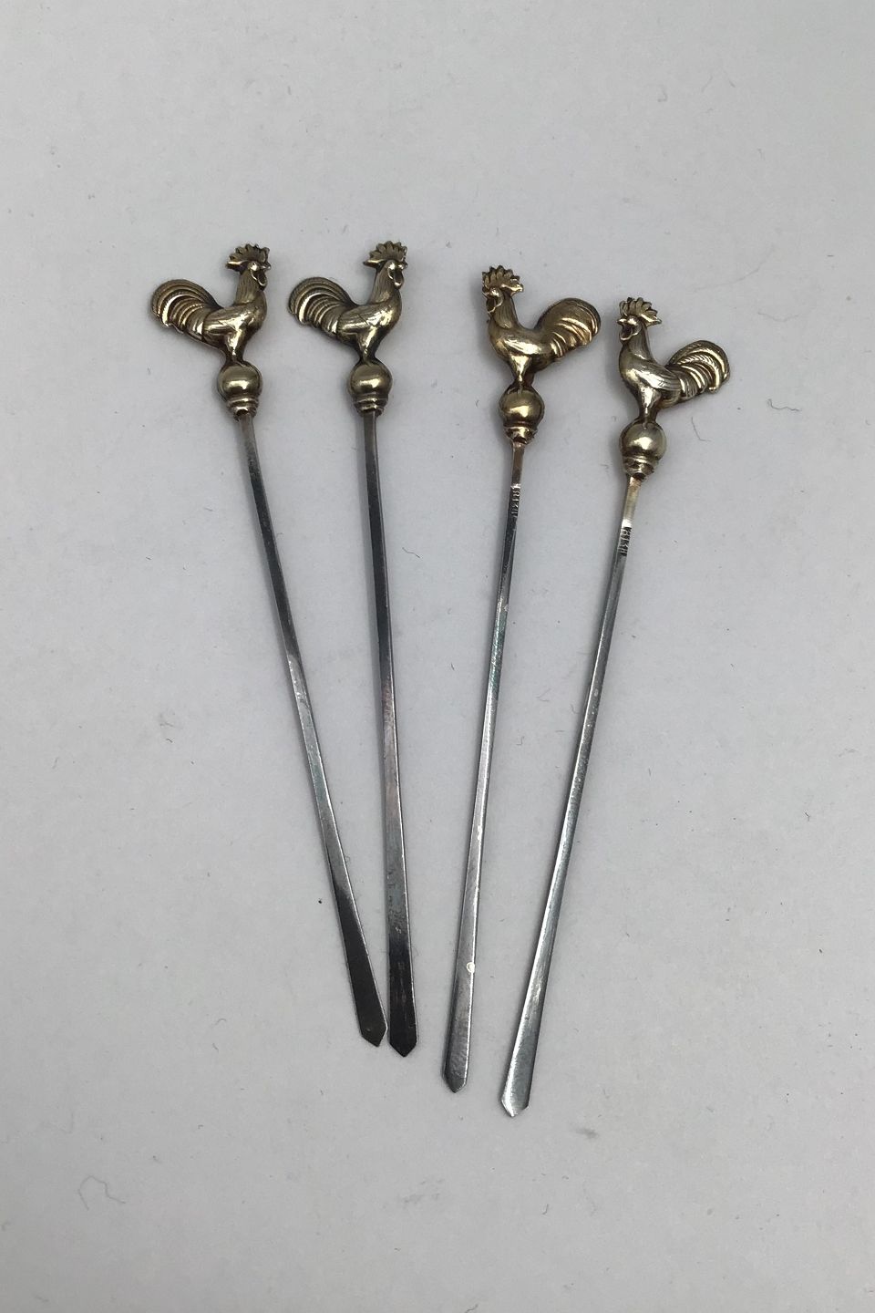 Sæt Olivenspyd / Cocktailpinde .813 Sølv Delvist Forgyldt (4) Måler L 9 cm (3.54 inch) Samlet vægt 10.43 gr (0.37 oz)Lager: 0