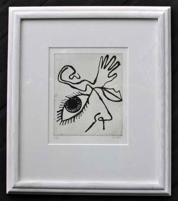 Ravn, Lars (1959 -) Dänemark: The Five Senses, 1989. Radierung. Signiert: LR 1989. 6/10. Höhe: 19,5 cm. B: 16,5 cm.Gerahmt: H: 46 cm. Breite: 40 cm.