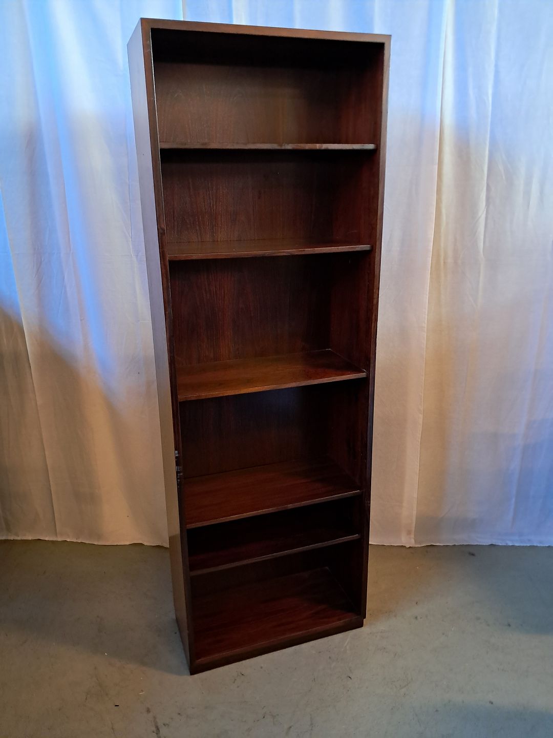Reol i fineret palisande, fra 1960erne.Den har brugsspor.