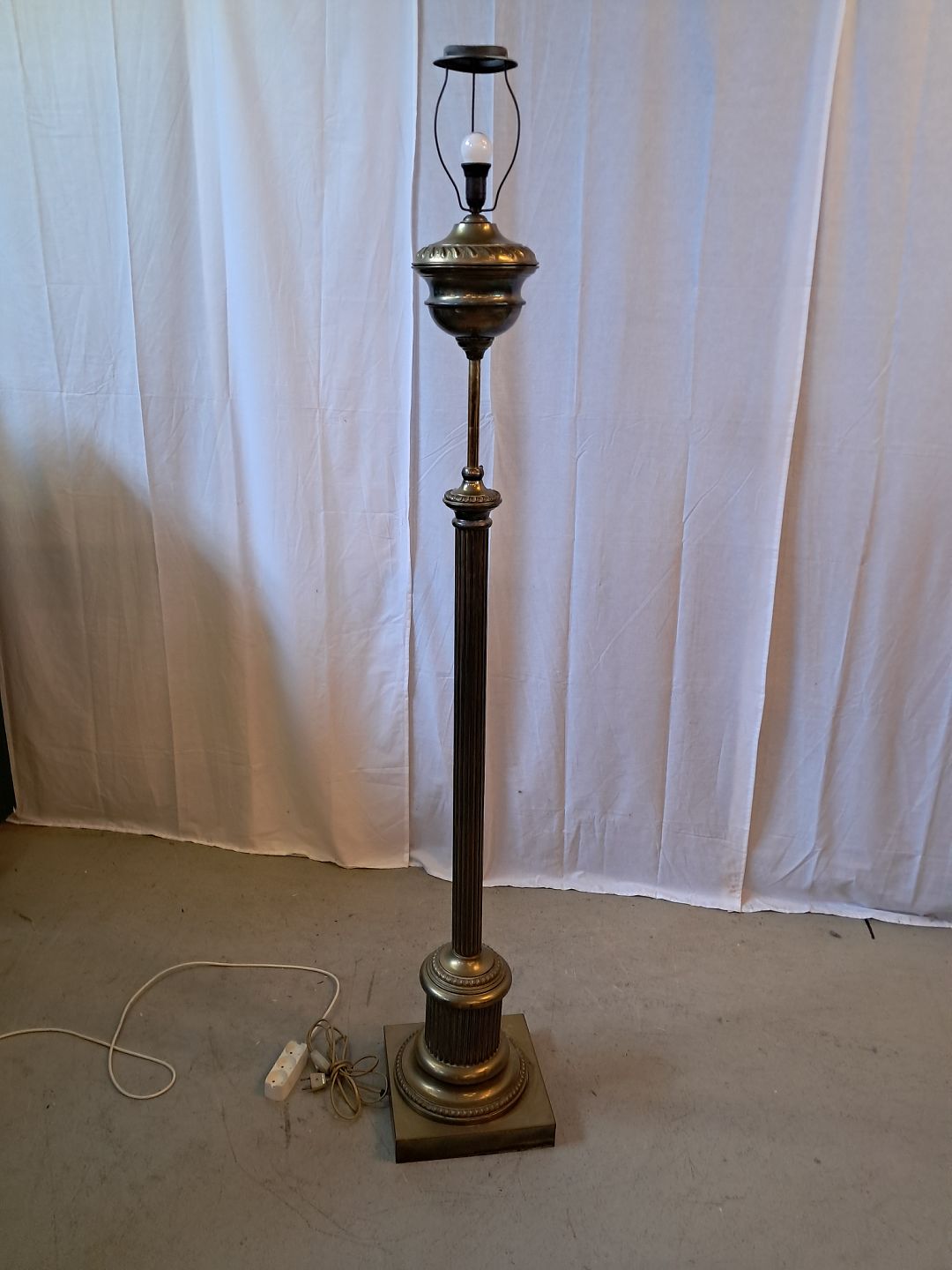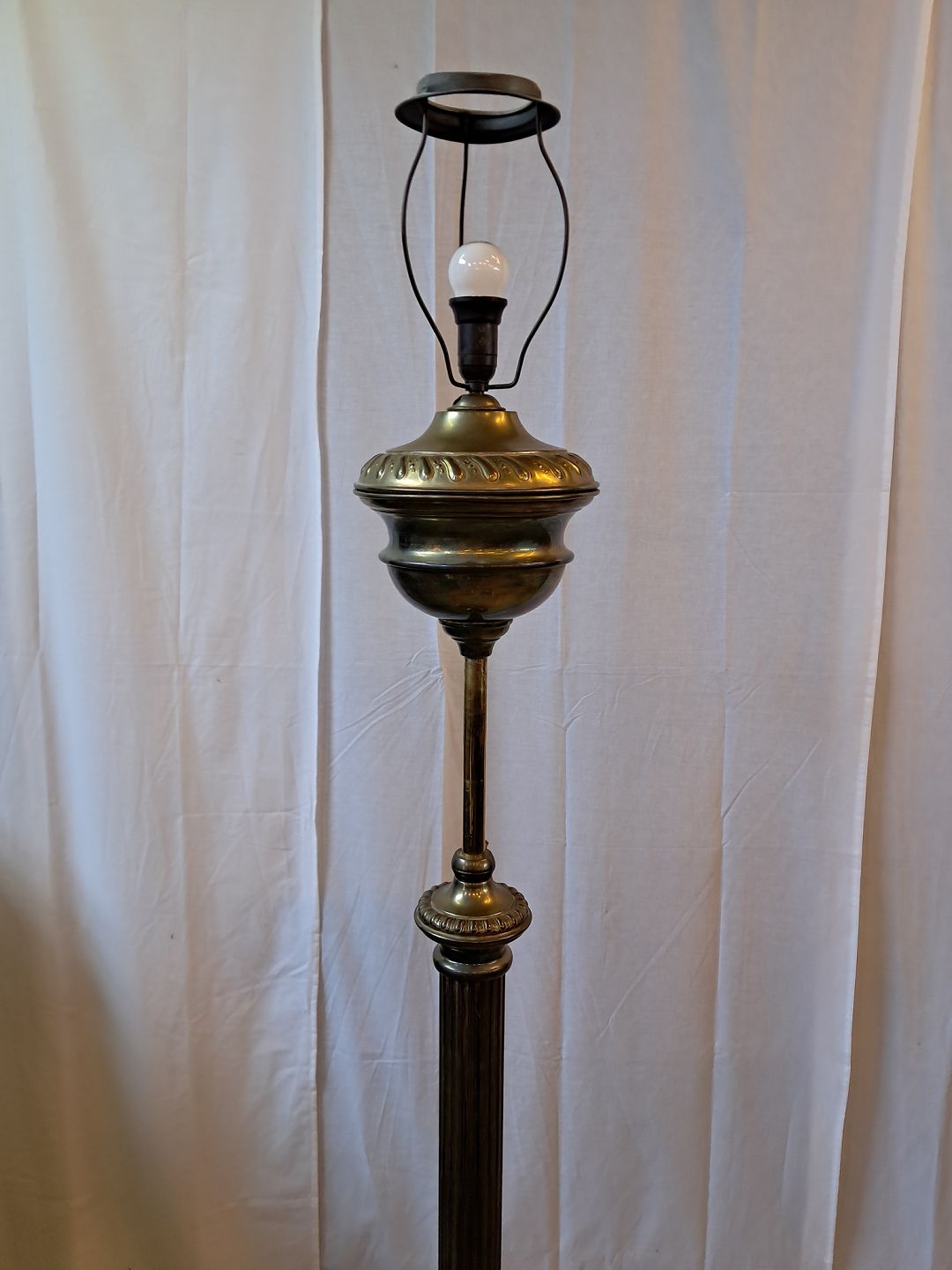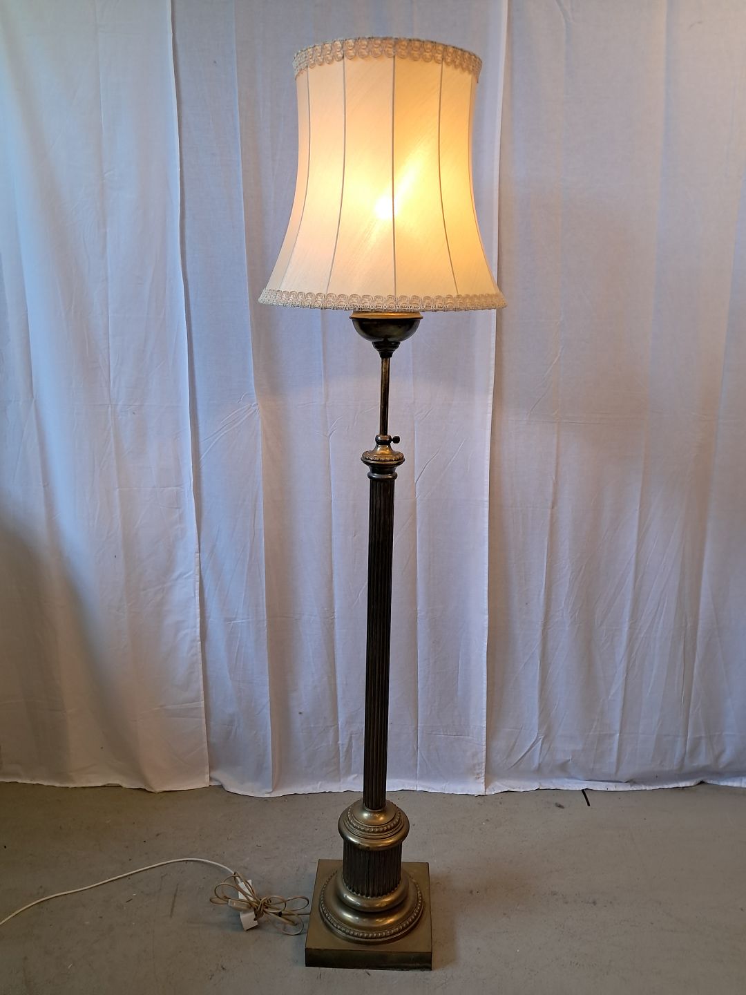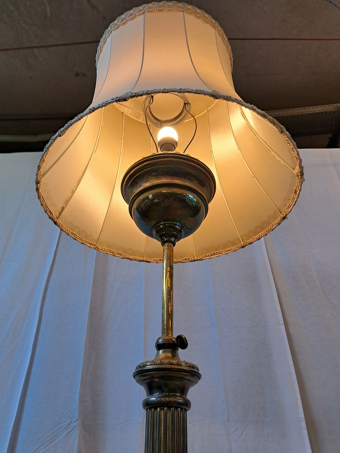 Standerlampe i metal/messing med lampeskærm, fra 1900erne.Den har brugsspor.