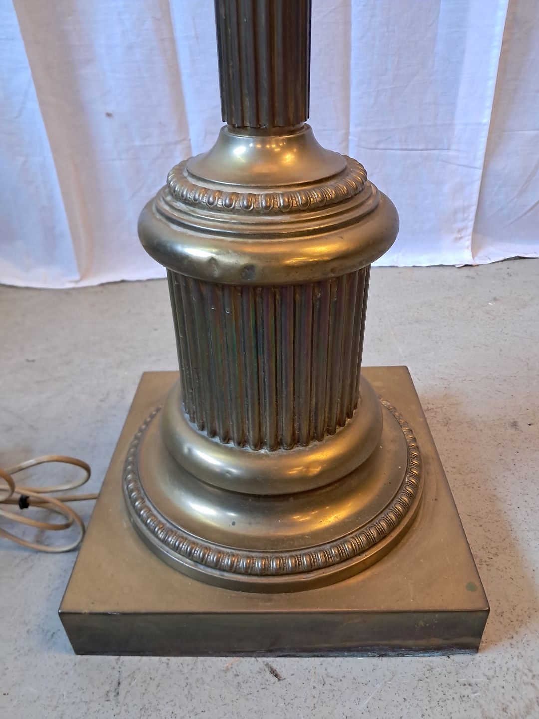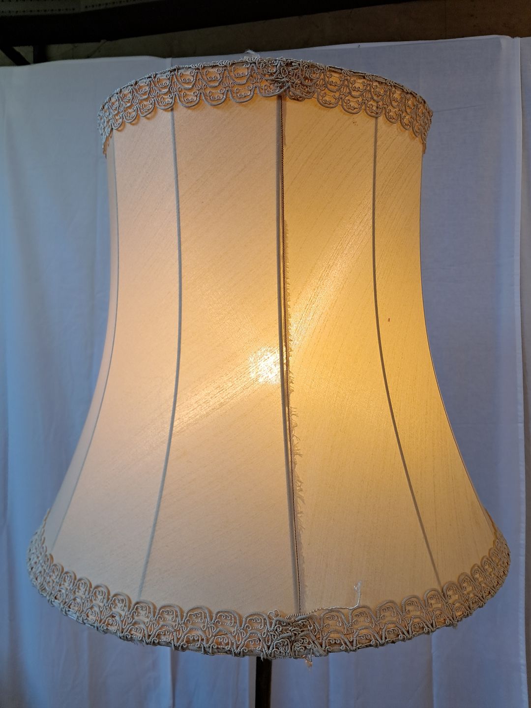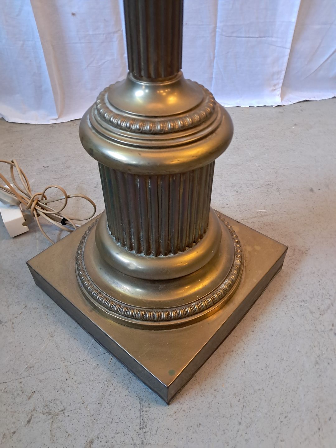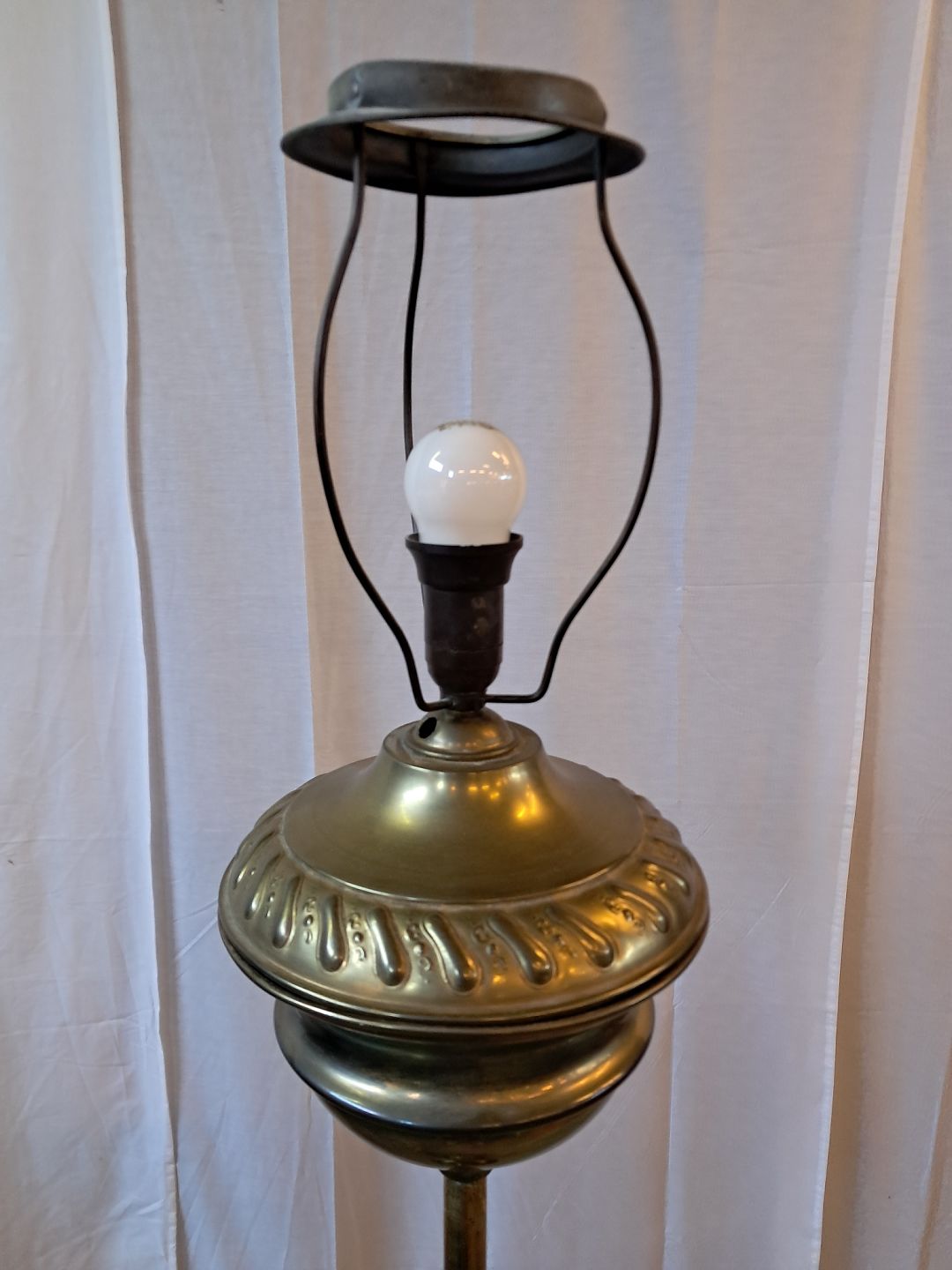 Standerlampe i metal/messing med lampeskærm, fra 1900erne.Den har brugsspor.