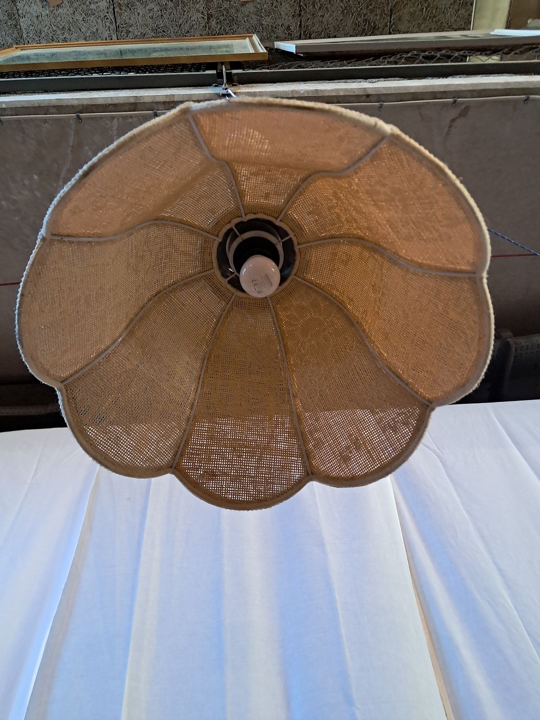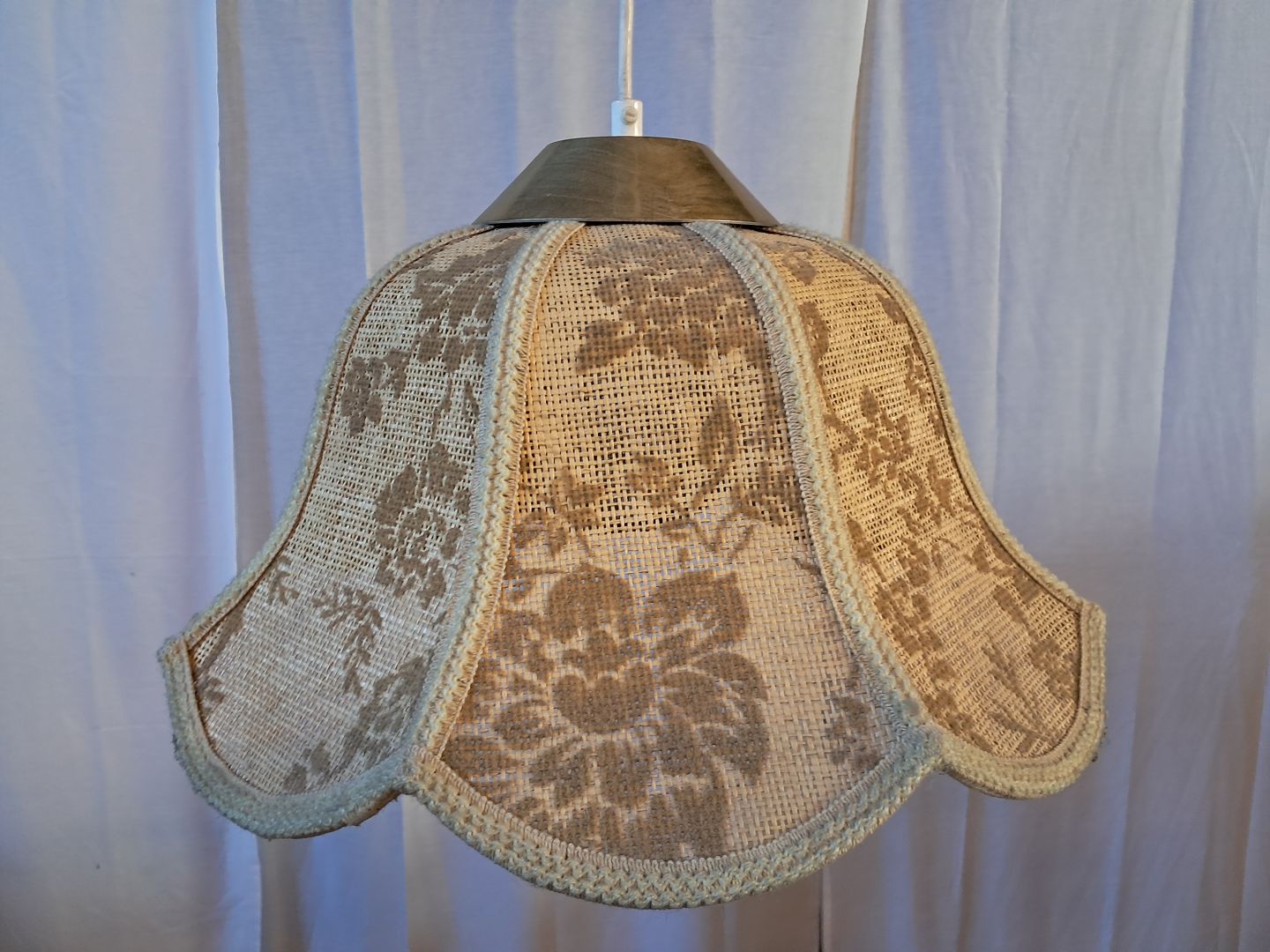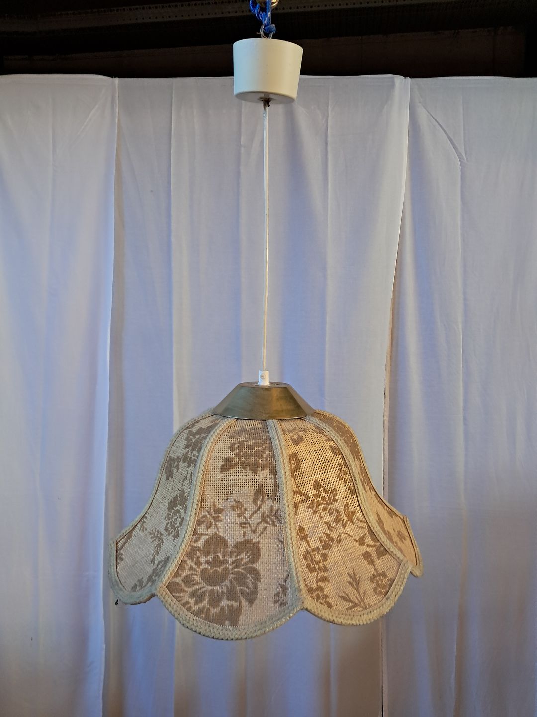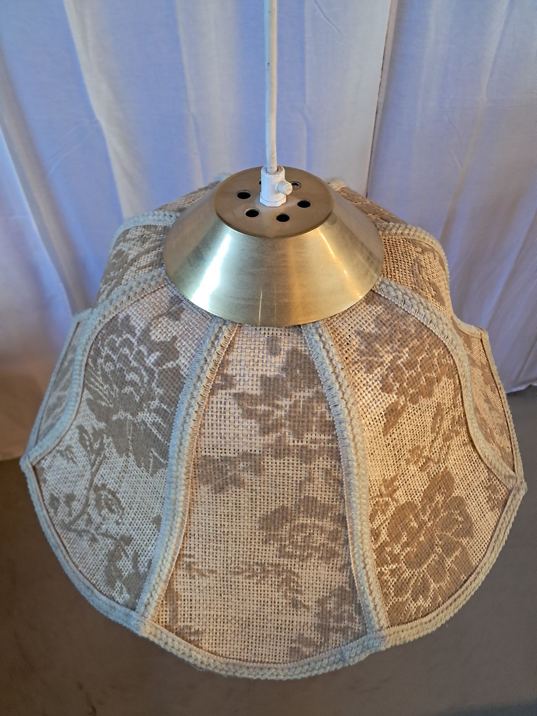 Lampe i metal og stof, fra 1980erne.Den har brugsspor.