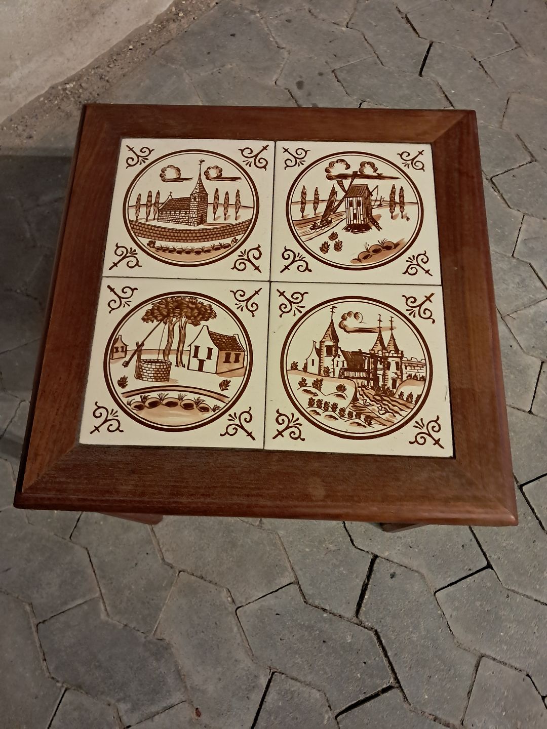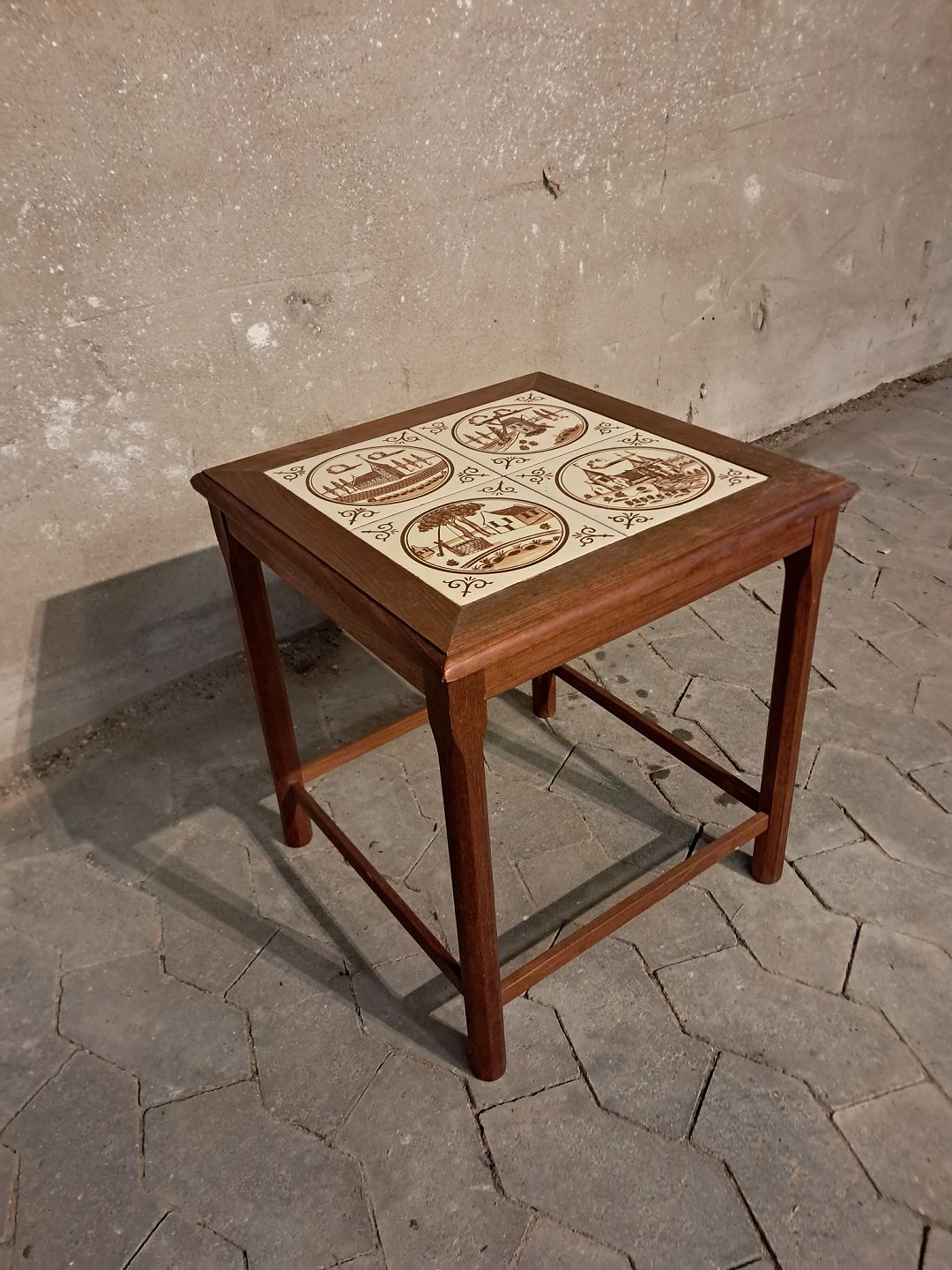 Lampebord i teaktræ med kakler, fra 1970erne.Det har brugsspor.