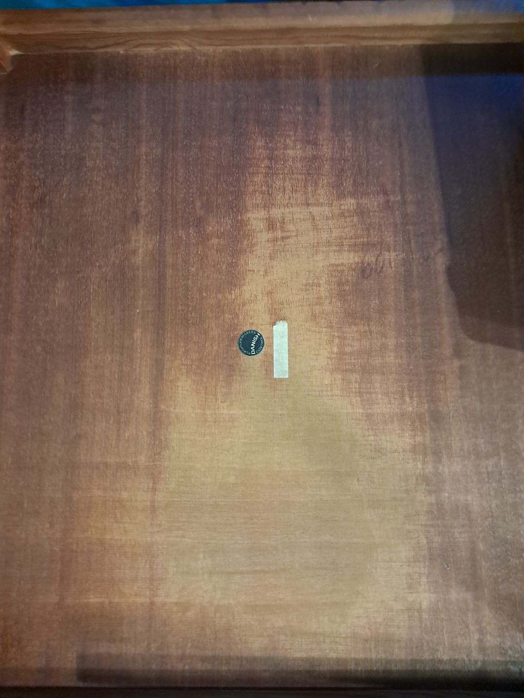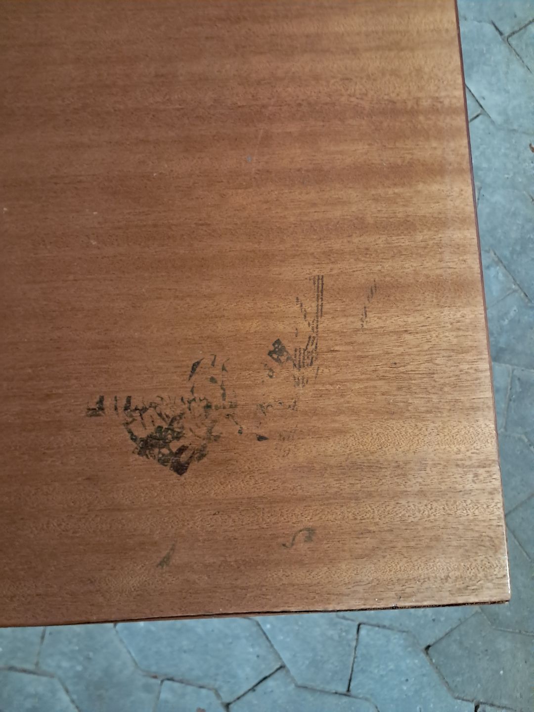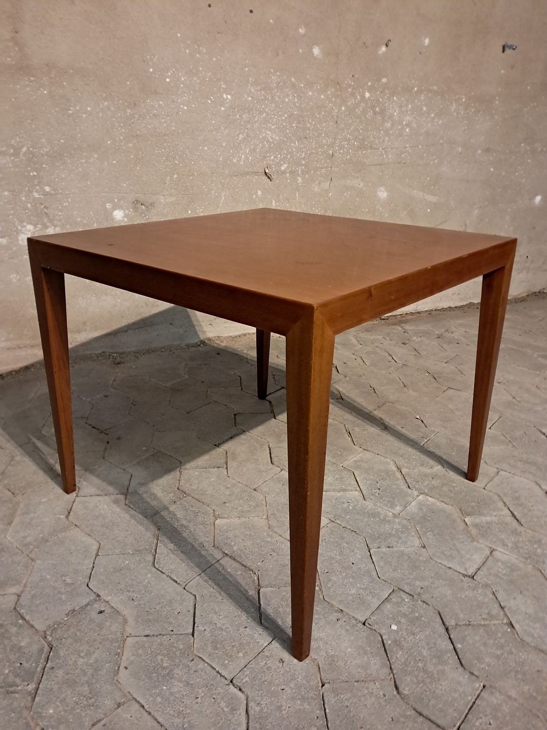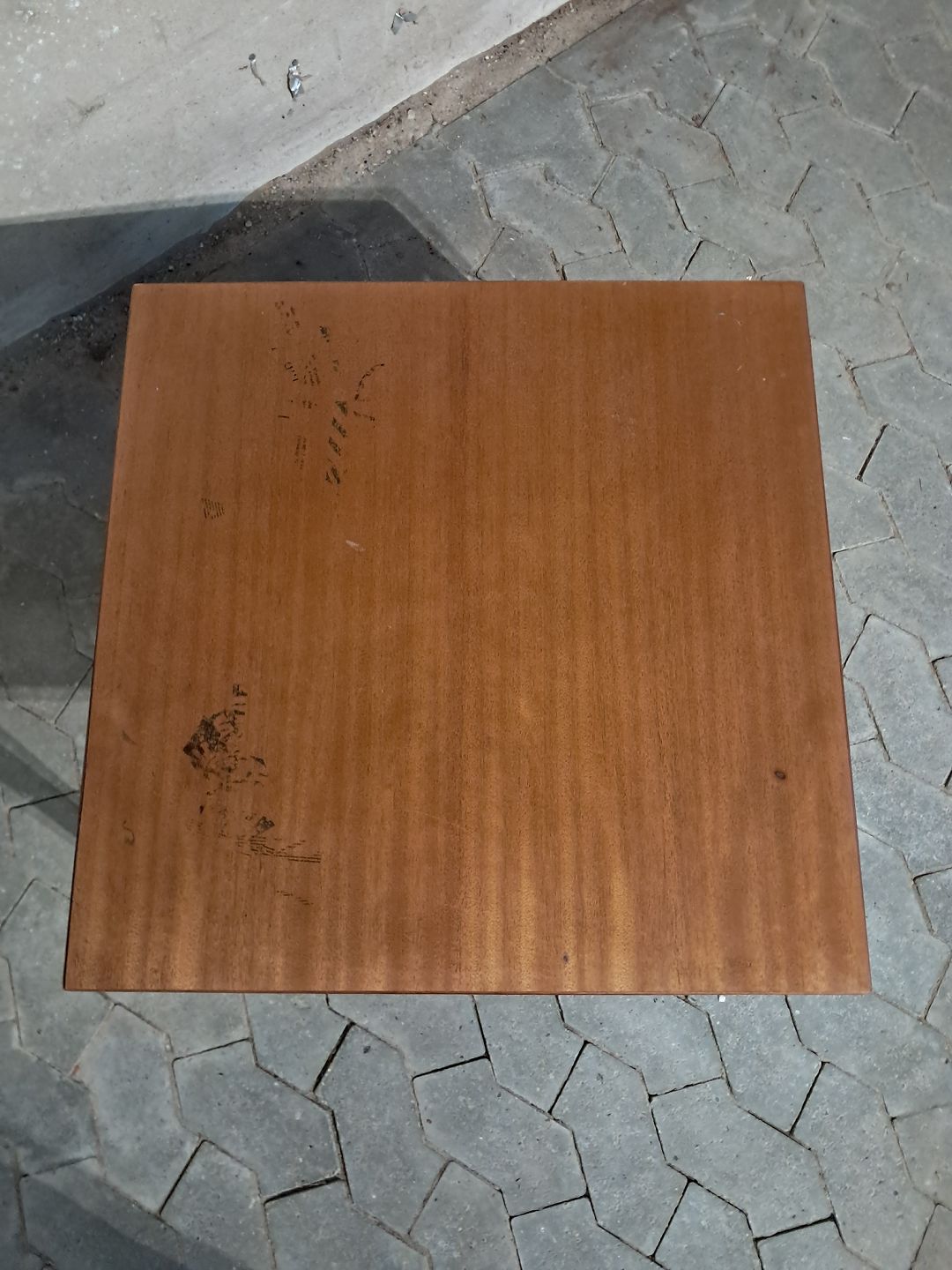 Haslev lampebord i fineret teaktræ, fra 1970erne.Det har brugsspor på bordpladen.