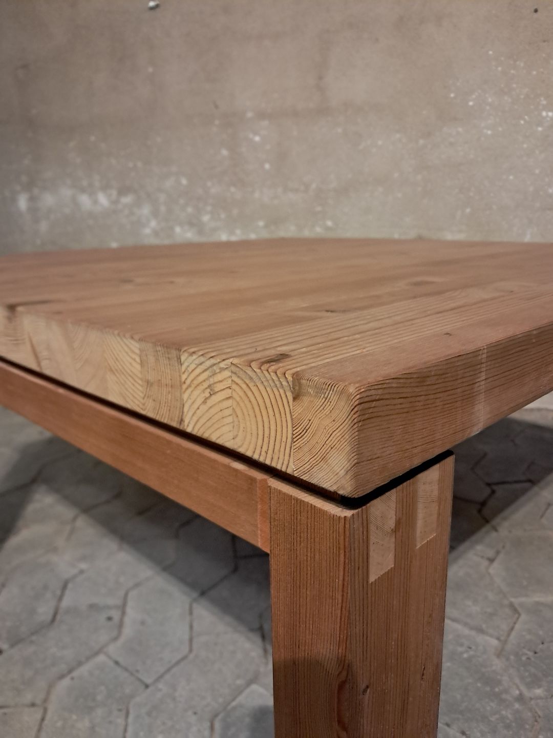 Sofabord i massivt fyrretræ, fra 1980erne.Det har brugsspor.