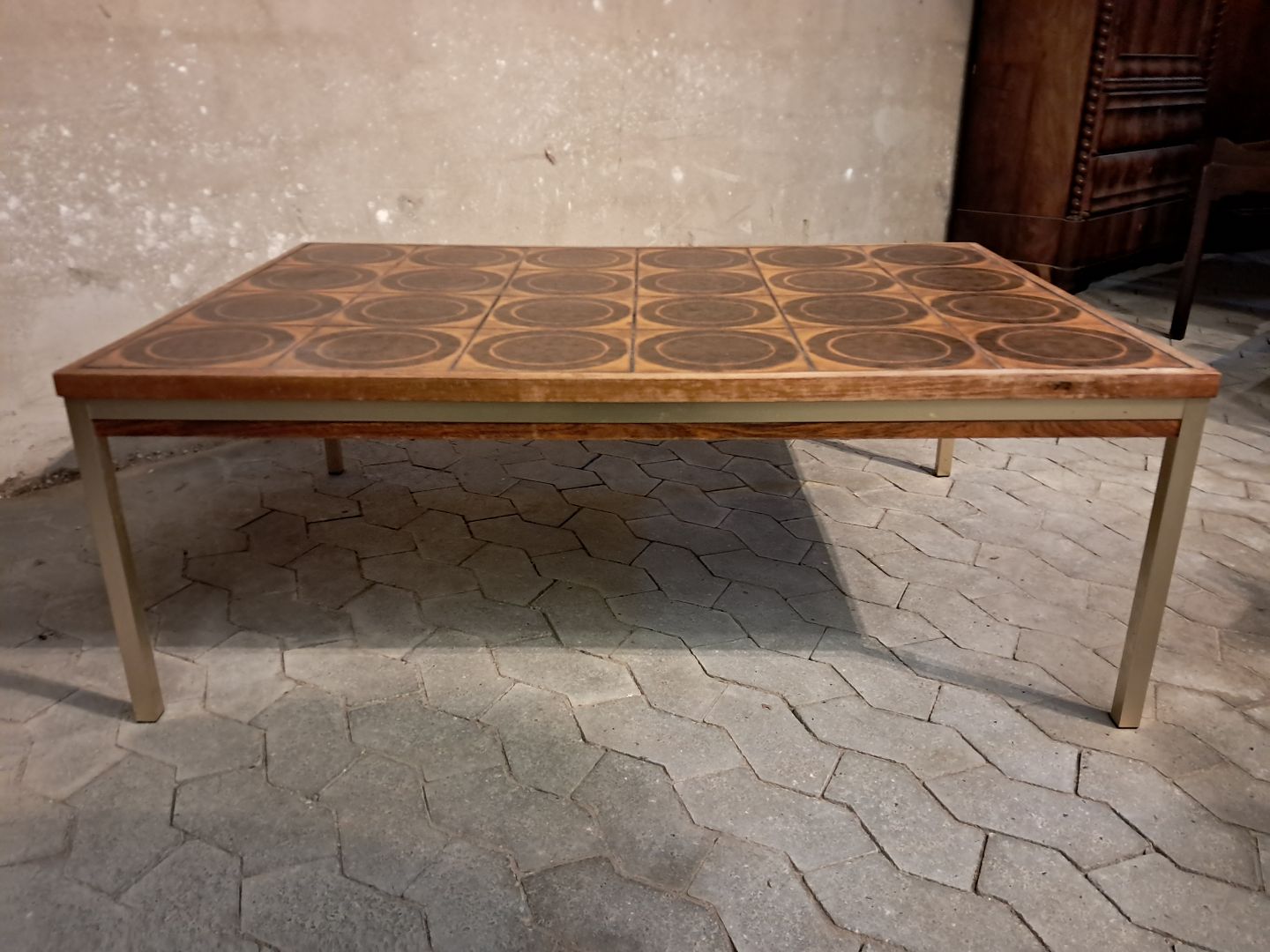Kakkel sofabord i palisander og metal, fra 1960erne.Det har brugsspor.