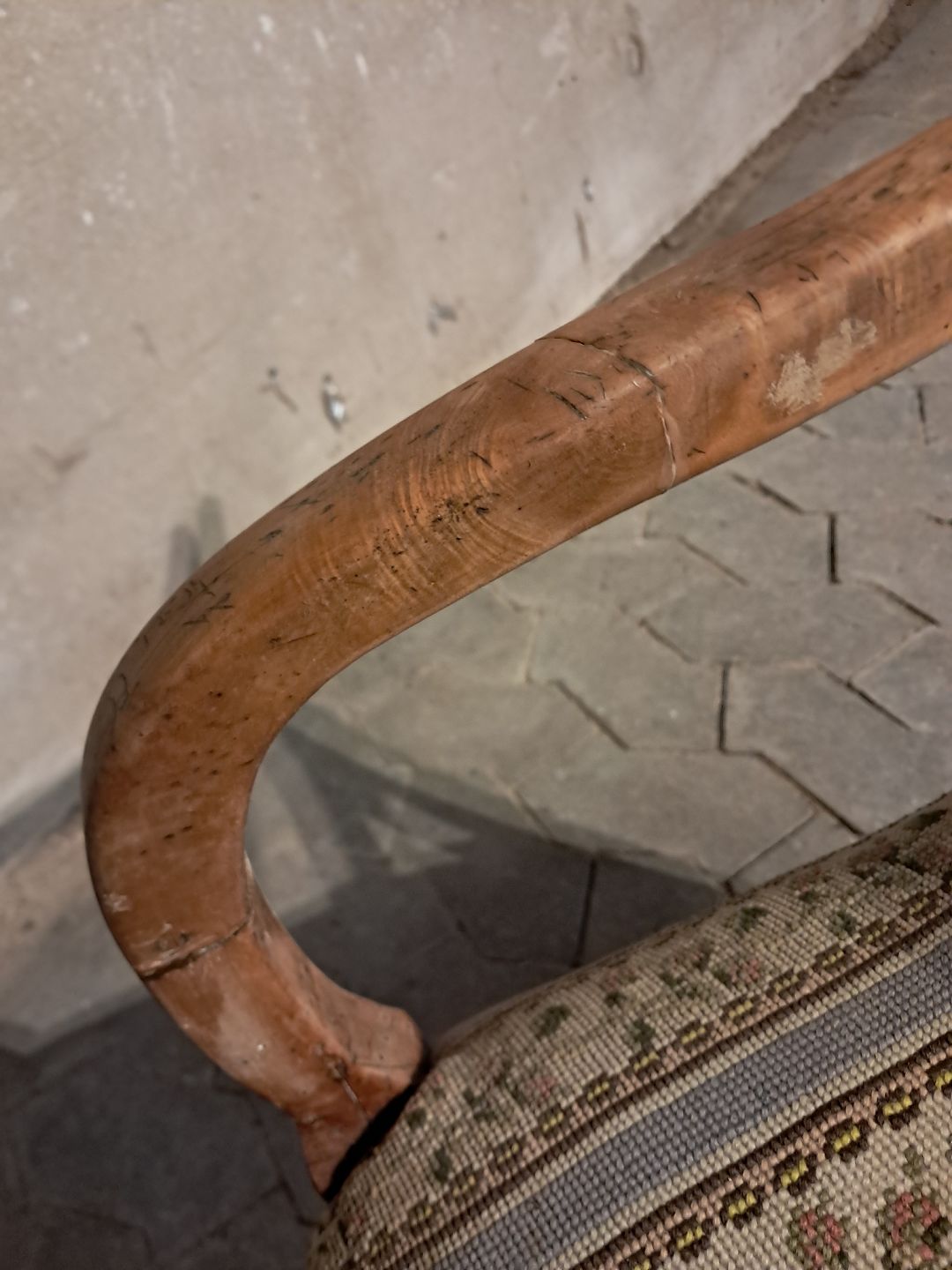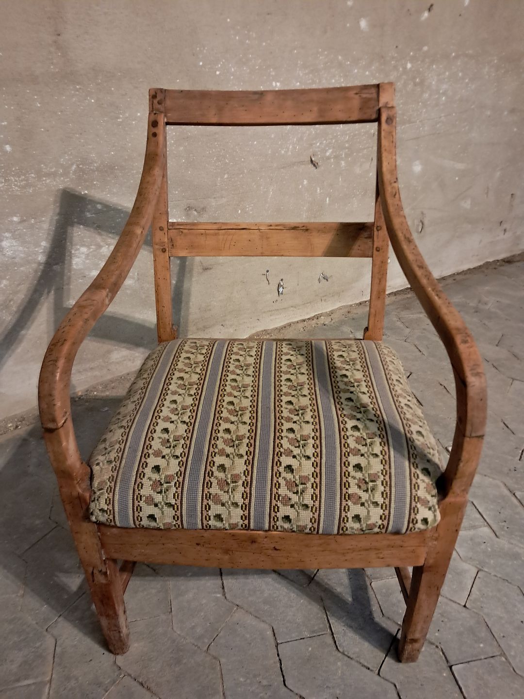 Armstol i massivt bøgetræ, fra 1900erne.Den har flere reparationer.
