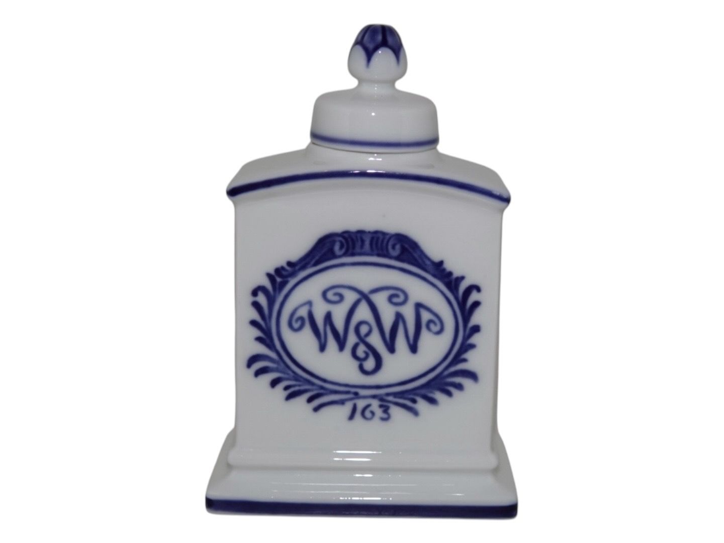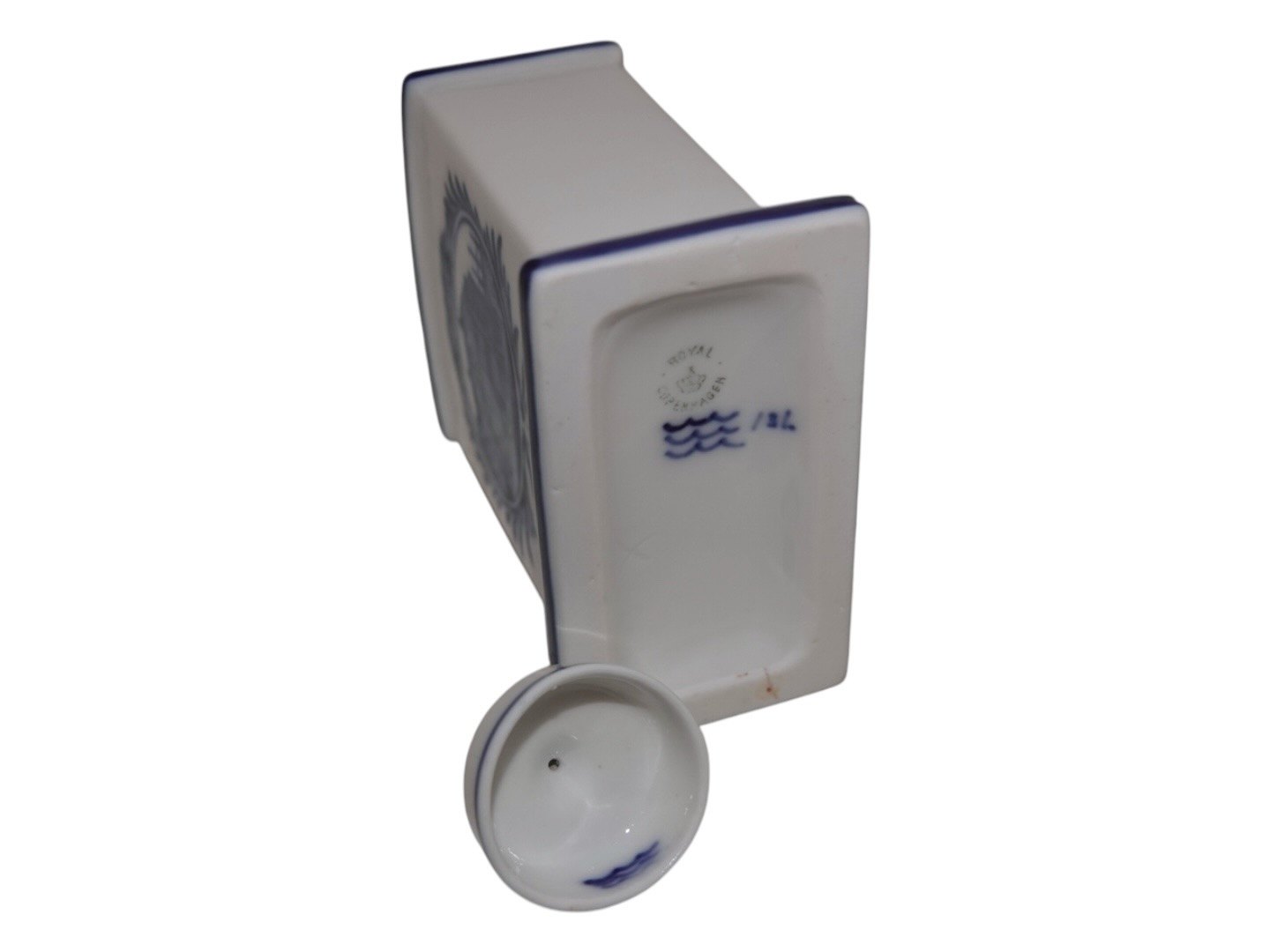 Royal Copenhagen tedåse med blå dekoration.1. sortering.
