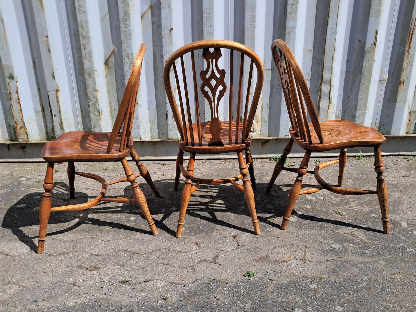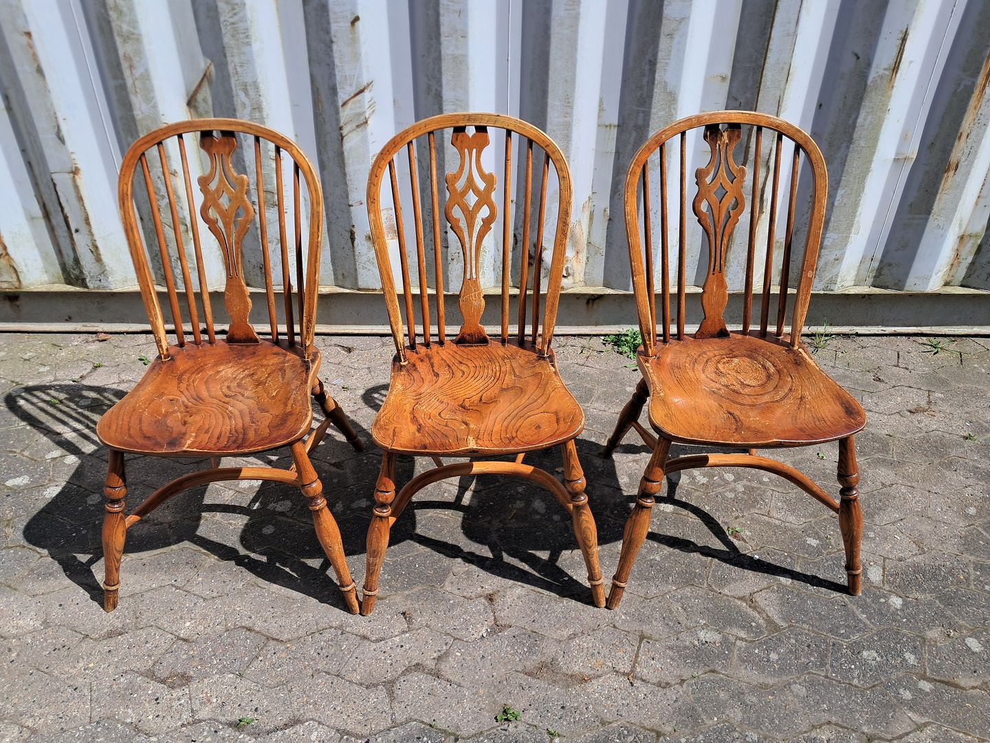 3 Stole i massivt egetræ, fra 1930erne.De har brugsspor.