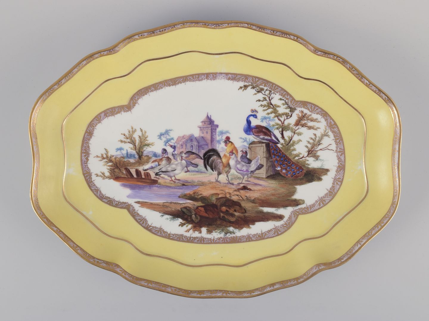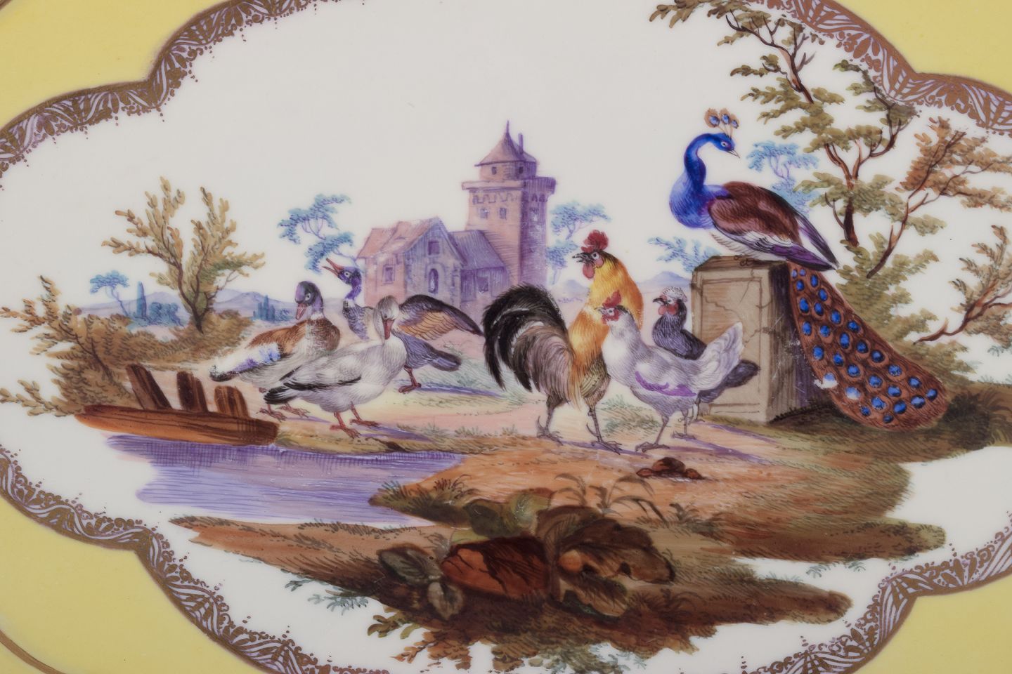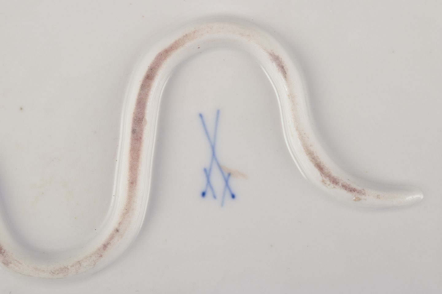 Antik Meissen bakke af porcelæn.Håndmalet med motiv af fugle i parklandskab.