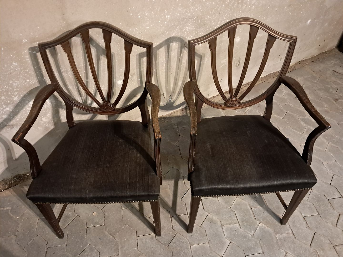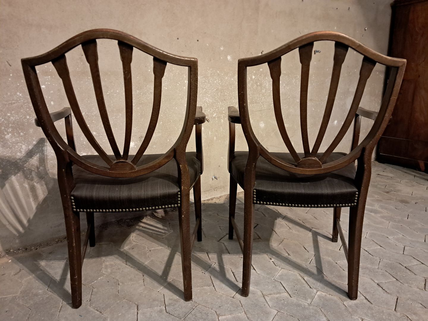 2 Armstol i massivt mahogni, fra 1980erne.De har brugsspor.